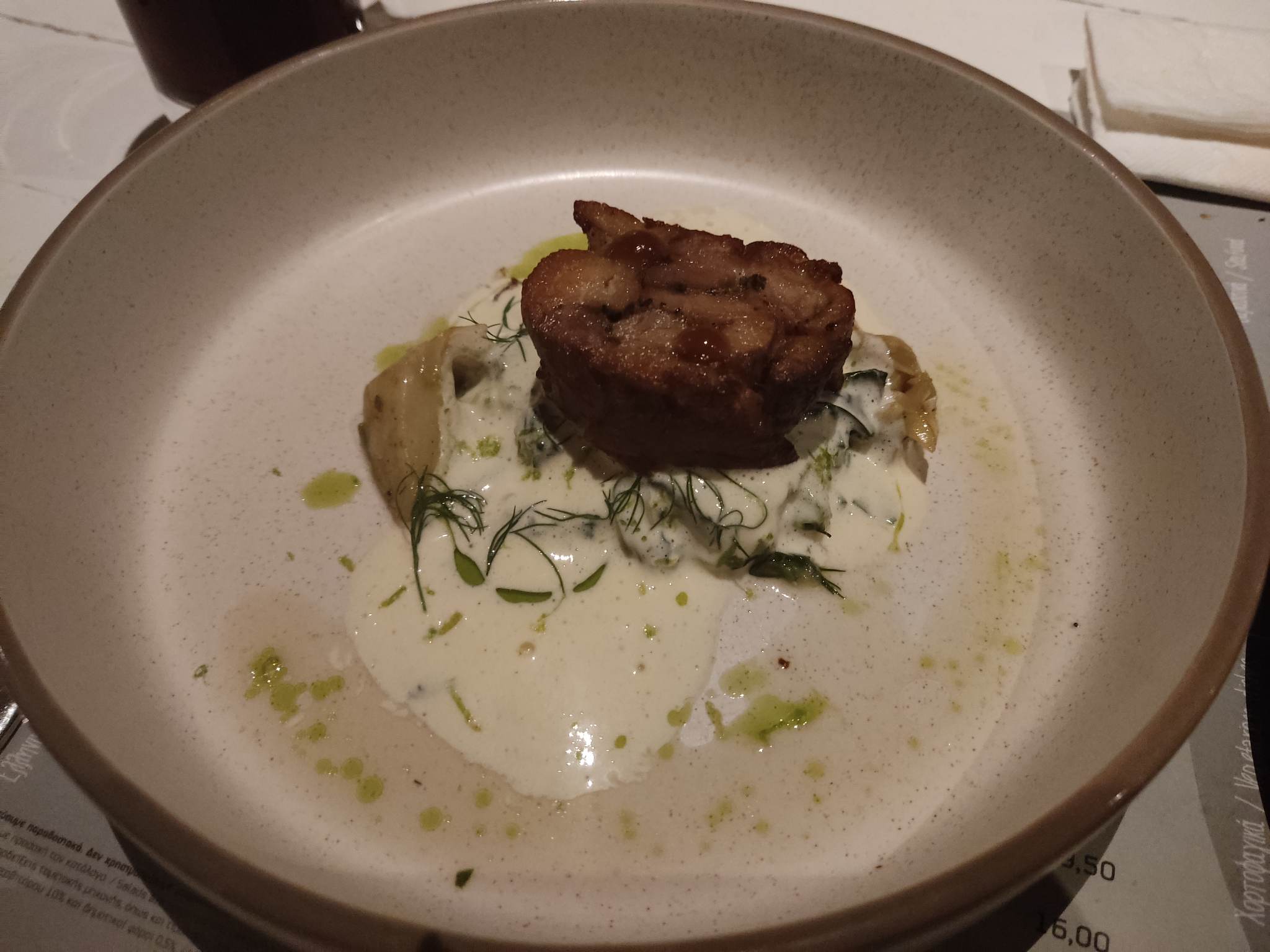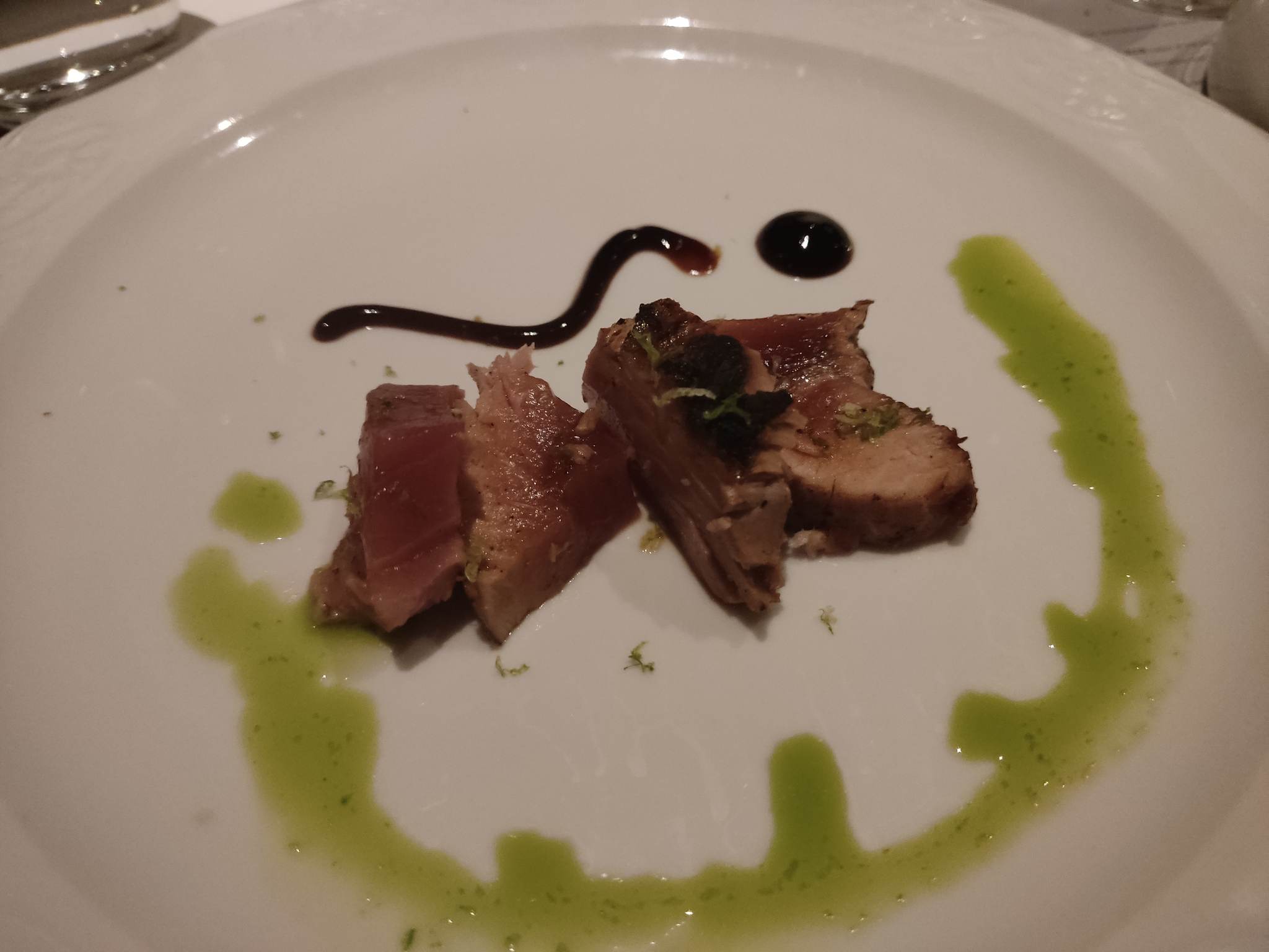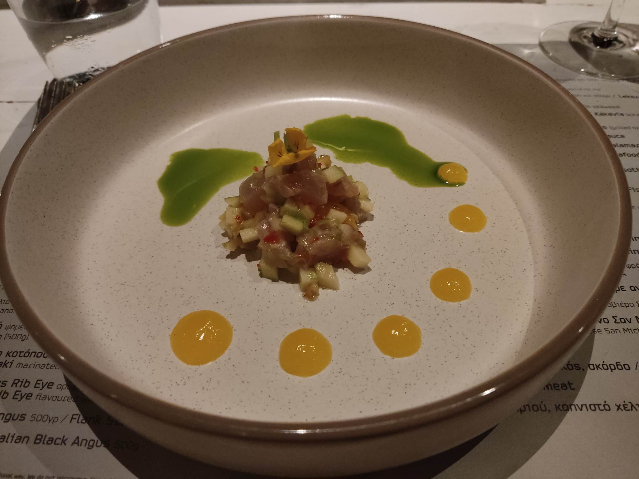 Μπριζόλα, φιλέτο τόνου, με συνοδεία αλμύρας και αχινού
