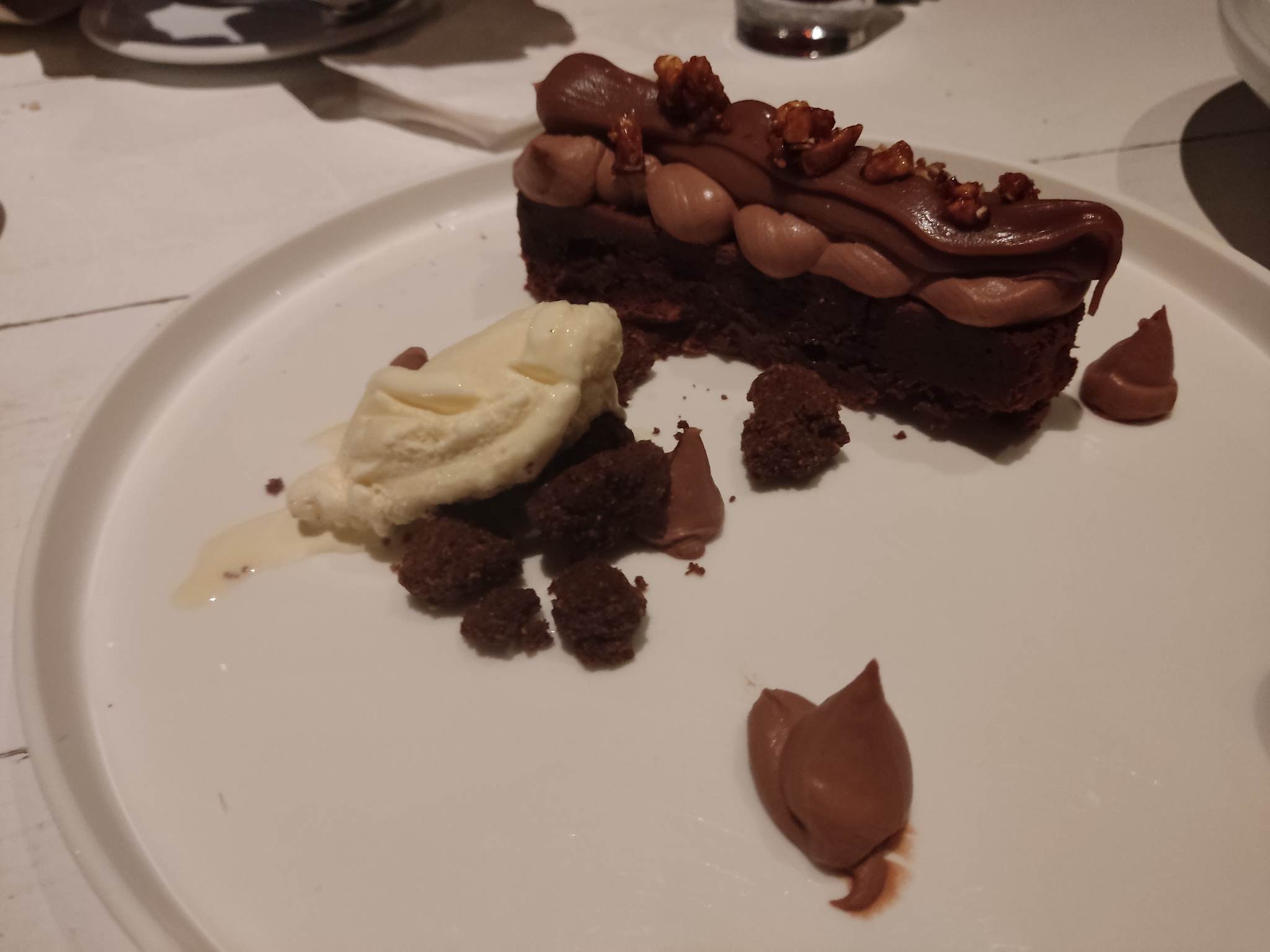 Σοκολατόπιτα, με καραμέλα και παγωτό βανίλια