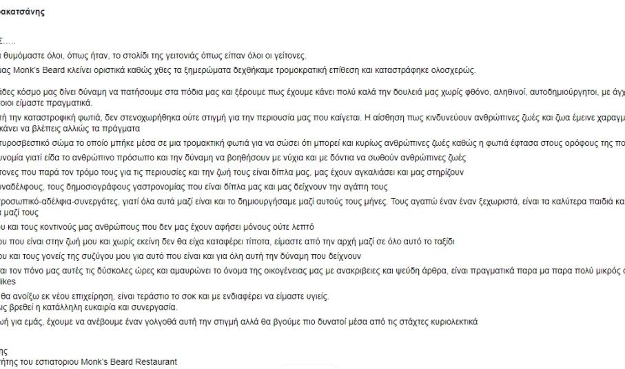 Καταστράφηκε ολοσχερώς μετά από φωτιά το εστιατόριο του Αλέξανδρου Καρακατσάνη