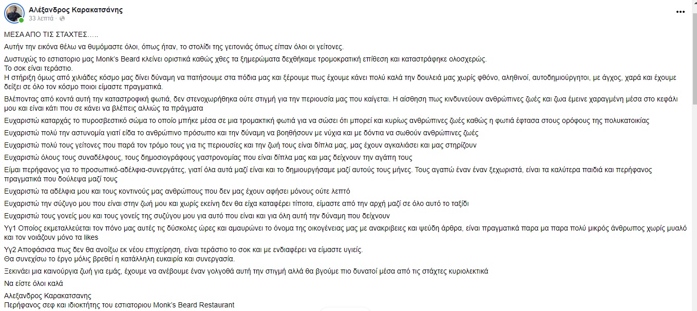 Η ανάρτηση του Αλέξανδρου Καρακατσάνη στο facebook