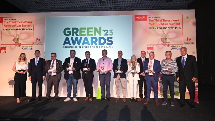 Οι σημαντικότερες δράσεις στην Ελλάδα για το περιβάλλον σε περιφέρειες, δήμους, φορείς και επιχειρήσεις της χώρας που έχουν επιτύχει υψηλά ποσοστά ανακύκλωσης και εφαρμόζουν πρότυπες περιβαλλοντικές πολιτικές επιβραβεύθηκαν για τρίτη χρονιά, στην τελετή απονομής των Green Awards 2023, στη Θεσσαλονίκη, στο πλαίσιο του συνεδρίου του Economist «The Third Thessaloniki Metropolitan Summit».