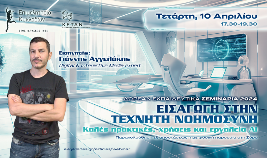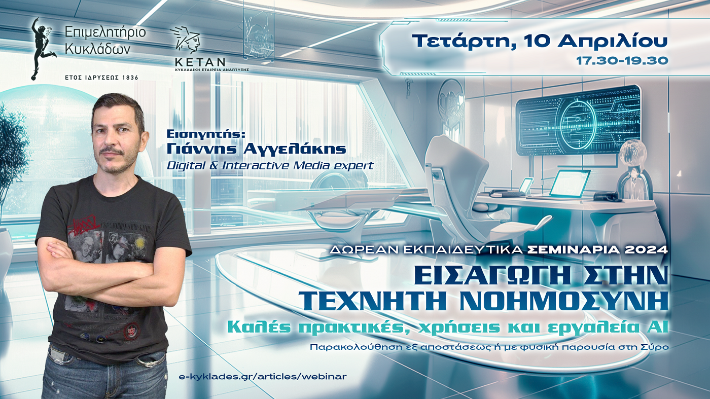Εισαγωγή στην Τεχνητή Νοημοσύνη: καλές πρακτικές, χρήσεις και εργαλεία ΑΙ, Τετάρτη 10 Απριλίου, 17.30-19.30