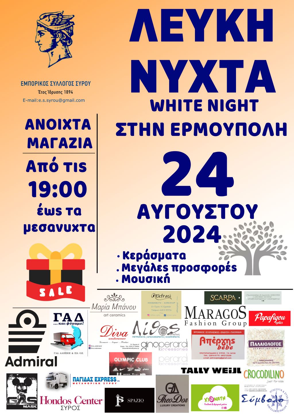 Το Σάββατο 24 Αυγούστου, ο επιχειρηματικός κόσμος της Ερμούπολης, θα γιορτάσει για άλλη μία χρονιά τη "Λευκή Νύχτα".