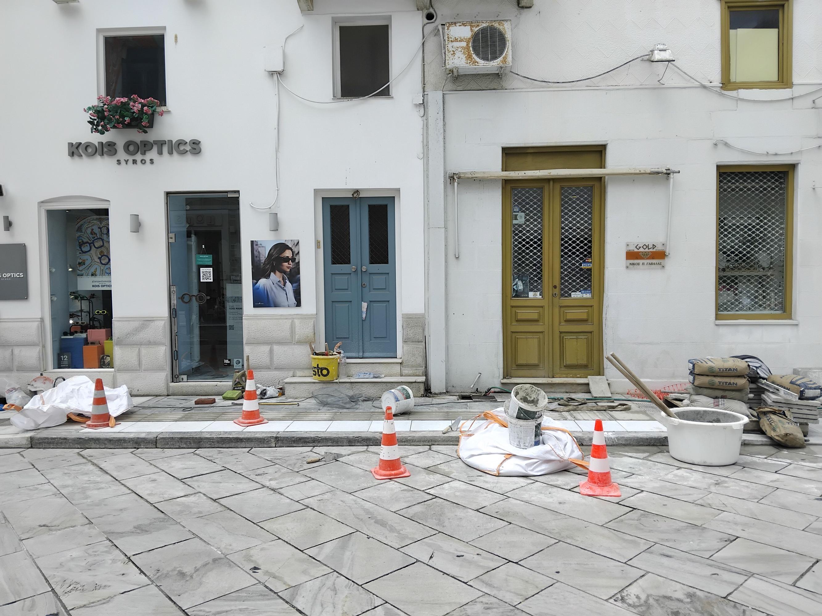 "Στις αρχές του Οκτώβρη και συγκεκριμένα στις 3 του μηνός, παραλάβαμε την έγκριση του Υπουργείου Πολιτισμού για τις παρεμβάσεις που θα γίνουν στις προσόψεις των καταστημάτων και συγκεκριμένα σε ότι αφορά τα οικοδομικά έργα. Δηλαδή, την επισκευή της επιφάνειας των τοίχων, την επισκευή και αντικατάσταση των στεγάστρων, όπως και την τοποθέτηση φωτιστικών σωμάτων εξωτερικού χώρου", τόνισε ο πρόεδρος του Εμπορικού Συλλόγου, δηλώνοντας ότι το αμέσως επόμενο διάστημα θα προχωρήσει η εργολαβική διαδικασία.