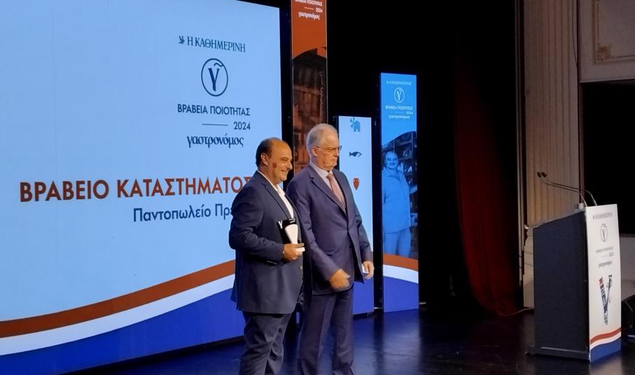 Το πρώτο βραβείο της εκδήλωσης απονεμήθηκε σε έναν Συριανό επιχειρηματία, τον Κώστα Πρέκα, ο οποίος παρέλαβε από τα χέρια του προέδρου της Βουλής, κ. Τασούλα, το "Βραβείο Καταστήματος", καθώς σύμφωνα με τον "Γαστρονόμο" η συγκεκριμένη επιχείρηση, που για 32 ολόκληρα χρόνια σηκώνει τη "σημαία" της τοπικότητας, αποτελεί μια αληθινή "κιβωτό" της Κυκλαδίτικης παραγωγής.