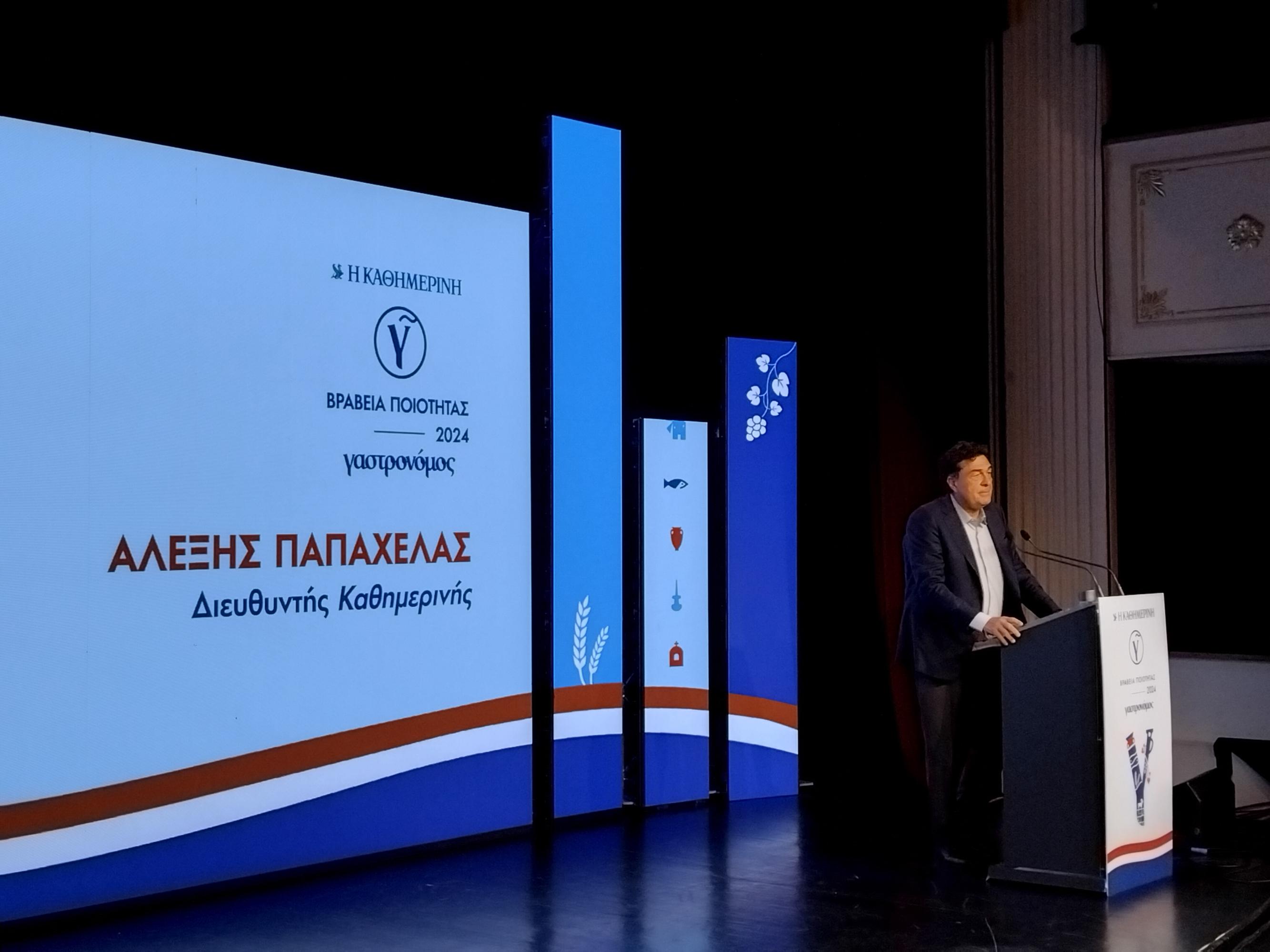 "Πρόκειται για εμάς έναν πολύ σημαντικό θεσμό, ο οποίος έχει πίσω του πολύ μεράκι και ψυχή από τα στελέχη του "Γασγρονόμου", καθώς με εξαιρετικό τρόπο αναζητούν την ποιότητα και την ιστορία του Ελληνισμού. Το κάνουν με πολύ μεράκι και γι' αυτό τους ευχαριστούμε", τόνισε κατά τη διάρκεια της σύντομης τοποθέτησής του ο κ. Παπαχελάς, σημειώνοντας ταυτόχρονα ότι "τα φετινά "17α Βραβεία Ποιότητας" διεξάγονται στις Κυκλάδες, καθώς βρισκόμαστε σε ένα κομβικό σημείο, ένα σημείο που ναι μεν θέλουμε τον τουρισμό, αλλά ταυτόχρονα να διατηρήσουμε και να συνεχίσουμε τις παραδόσεις αιώνων. Η επιλογή αυτή η εκδήλωση να διεξαχθεί στη Σύρο, πάρθηκε βασισμένη στο γεγονός ότι αυτό το νησί σέβεται την ιστορία του και τις παραδόσεις του".