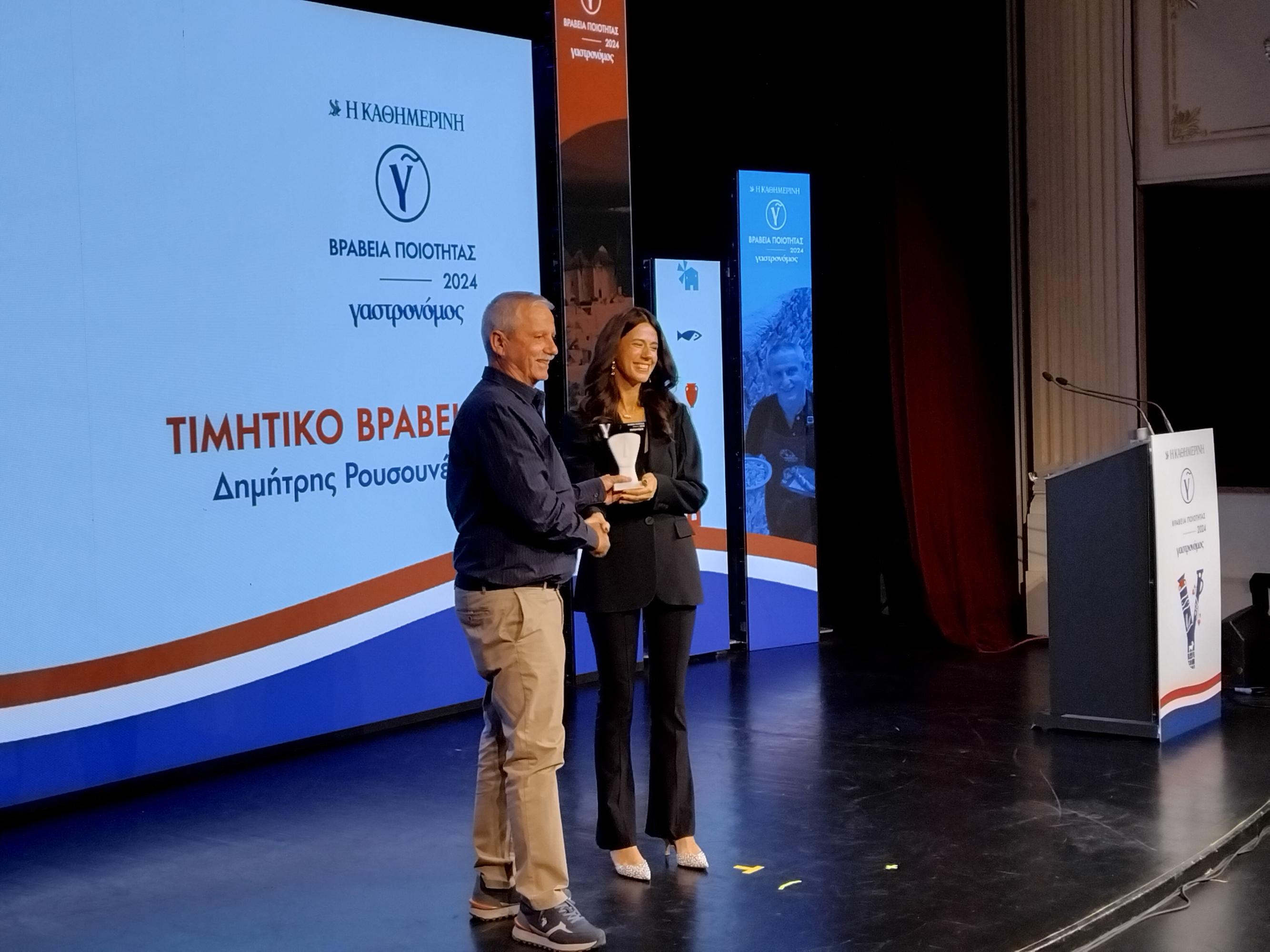 - Τιμητικό βραβείο στον Δημήτρη Ρουσσουνέλο, για την έρευνά του πάνω τα γαστρονομικά έθιμα του νησιού του και των Κυκλάδων, τις ημερίδες που διοργανώνει και τη συνολική δράση του, μέσα από την οποία παλεύει να διασώσει τη φυσιογνωμία της παλιάς Μυκόνου.