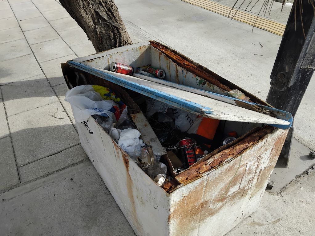 Αυτή την αισθητική και λειτουργική αναβάθμιση έρχονται να “αμαυρώσουν” και κάποιες λεπτομέρειες, όπως ορισμένα μεγάλα ξύλινα κιβώτια επί του πεζοδρομίου και τα οποία έχουν μετατραπεί σε κάδους απορριμμάτων από τους περαστικούς.