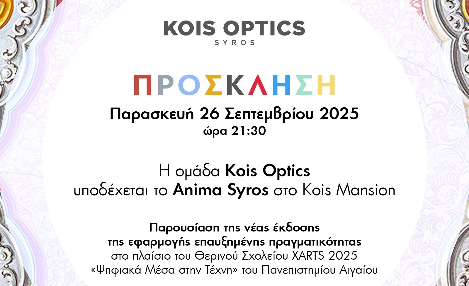 Το Animasyros, υποδέχεται σήμερα στις 9 και μισή το βράδυ στο Kois Mansion, η ομάδα Kois Optics.