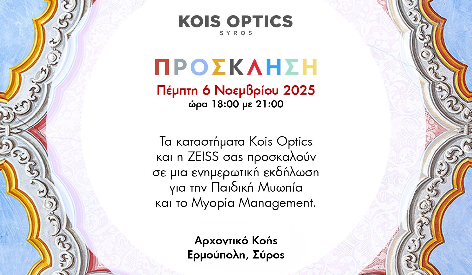 Τα καταστήματα Kois Optics και η ZEISS θα πραγματοποιήσουν ενημερωτική εκδήλωση για την παιδική μυωπία και την Myopia Management.