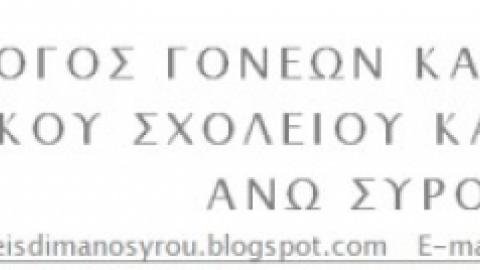 Στο ίδιο μήκος κύματος οι γονείς και κηδεμόνες του Δημοτικού Σχολείου και Νηπιαγωγείου Άνω Σύρου, κρούουν τον κώδωνα του κινδύνου, ενημερώνοντας τους γονείς ότι βάσει του σχεδιασμού του Υπουργείου τόσο το Δημοτικό Σχολείο Άνω Σύρου, όσο και άλλα σχολεία της Σύρου θα πρέπει να κλείσουν ή να υποβαθμιστούν σε πενταθέσια ή τετραθέσια.
