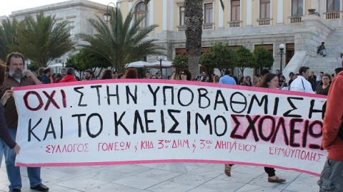 Μικρός ο αριθμός της δασκάλων, αλλά πολύ μικρότερος ο αριθμός των γονέων που συμμετείχαν στο χθεσινό κάλεσμα της εκπαιδευτικής κοινότητας του νησιού, για δυναμική αντίδραση στα νέα μέτρα κατάργησης και συγχώνευσης των δημοτικών σχολείων της Σύρου.