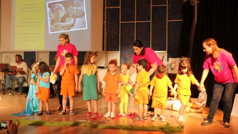 Τον καλύτερό τους εαυτό έδωσαν τα μικρά παιδιά του παιδικού σταθμού "Η παλάμη Του Θεού" της Ιεράς Μητρόπολης Σύρου στη χθεσινή εκδήλωση που πραγματοποίησαν για τη λήξη του φετινού σχολικού έτους στην αίθουσα πολλαπλών χρήσεων των Λυκείων στο Μάννα.