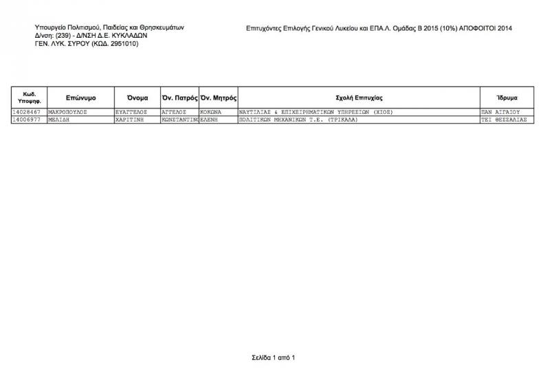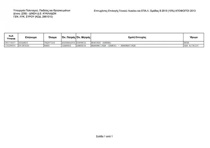 Από τα δύο δευτεροβάθμια σχολεία της Σύρου, οι διευθυντές τους μίλησαν με τα θερμότερα λόγια για τις επιτυχίες των μαθητών τους, δηλώνοντας ικανοποίηση από τα αποτελέσματα.