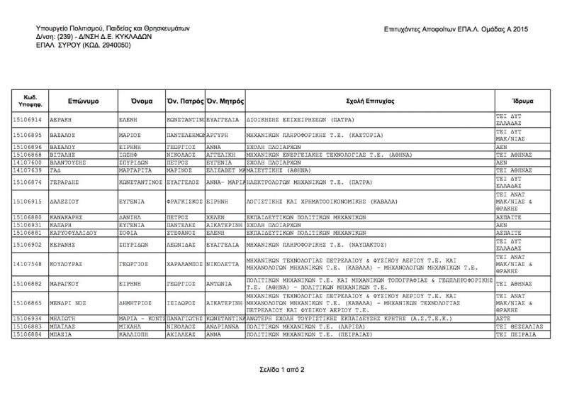 Προς τα ΑΕΙ και ΤΕΙ είναι έτοιμοι να οδεύσουν και εκατοντάδες υποψήφιοι από τον Νομό Κυκλάδων, οι οποίοι πέτυχαν την είσοδο τους στην τριτοβάθμια εκπαίδευση, εκ των οποίων οι 105 επιτυχόντες προέρχονται από τη Σύρο.