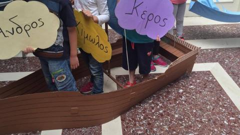 Η υπεύθυνη των προγραμμάτων κ. Μαρία Κάπαρη μίλησε στους μαθητές για τα ειδώλια και τη δημιουργία της πόλης μας. Στη συνέχεια, όλοι μεταφέρθηκαν στο αίθριο του Μουσείου, όπου είχαν την ευκαιρία να “ταξιδέψουν” με το “καραβάκι” από νησί σε νησί, διανύοντας το Αιγαίο Πέλαγος.