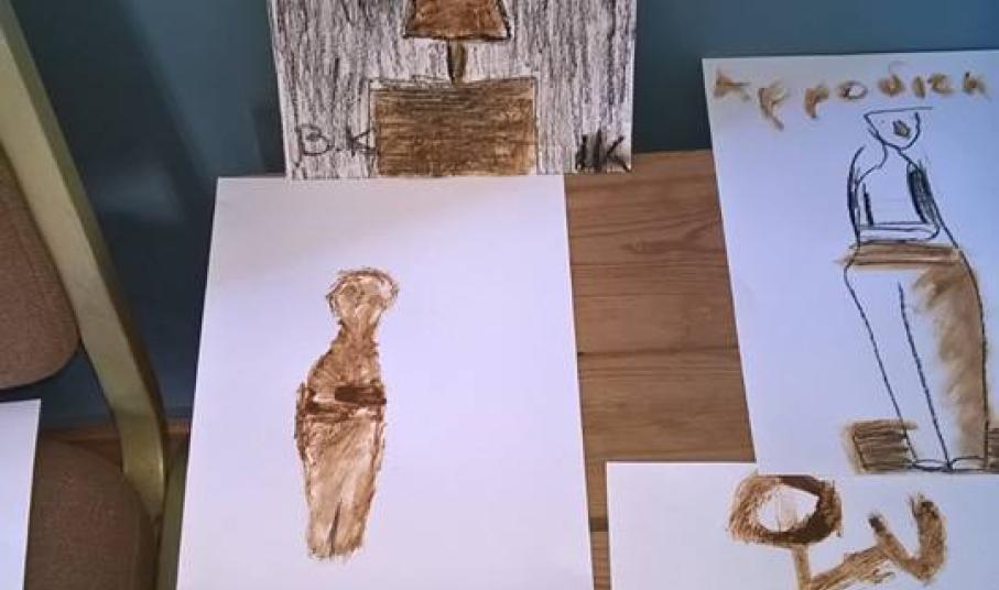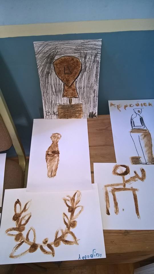 Η εποικοδομητική αυτή συζήτηση έδωσε «φτερά» στη φαντασία αι τη δημιουργικότητα των μαθητών, οι οποίοι στη συνέχεια ξεδίπλωσαν το ταλέντο τους, ζωγραφίζοντας με κοκκινόχωμα και κάρβουνο και φτιάχνοντας ειδώλια από πηλό.