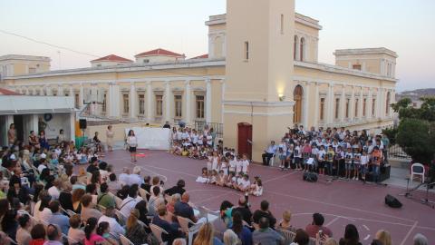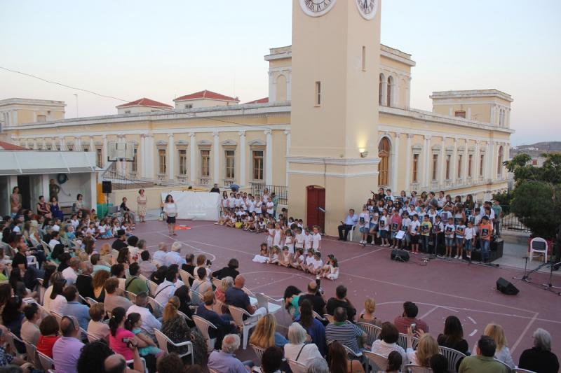 Από παιδικές φωνές που τραγούδησαν γνωστά μουσικά κομμάτια του συνθέτη Σταύρου Ξαρχάκου “φωτίστηκε” η Ερμούπολη το απόγευμα του Σαββάτου, καθώς οι μαθητές του 1ου Δημοτικού Σχολείου Ερμούπολης αποχαιρέτησαν το διδακτικό έτος 2016 – 2017 πραγματοποιώντας μία ξεχωριστή εκδήλωση αφιερωμένη στο μουσικό έργο του.