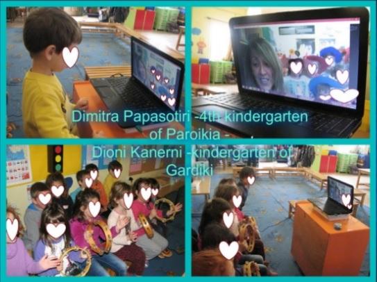 Τα παιδιά συμμετείχαν σε συζητήσεις κατά τη διάρκεια ανάγνωσης ιστοριών, επεξεργασίας και προβληματισμούς μέσα από επίδειξη εποπτικού υλικού και βίντεο, ήρθαν σε επαφή με τη μητρική γλώσσα των χωρών που συμμετείχαν στο πρόγραμμα, γράφοντας ευχές στην Χριστουγεννιάτικη κάρτα τους, στα Αγγλικά, Λιθουανικά και Ρουμανικά και έγιναν μικροί μαθητές, συνεχίζοντας και δίνοντας τέλος σε μια ιστορία.