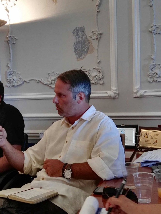Μπορώ να σας πω για παράδειγμα περιπτώσεις που εμείς σαν απόφοιτοι έχουμε βρεθεί έξω από διαγωνισμούς του αντικειμένου μας από την Περιφέρειά μας, την Περιφέρεια Ν. Αιγαίου που είναι το σπίτι μας. Μπορώ να σας πω ότι έχουμε χαρακτηριστεί εστίες ανομίας, μπορώ να σας πω ότι η φιλοξενία είναι και δεν είναι γιατί μπορεί να πρέπει να το κάνουμε Πινακοθήκη το Καζίνο, μπορεί να πρέπει να αναβαθμίσουμε το Πνευματικό Κέντρο. Όλα αυτά είναι καταγεγραμμένα, δεν ανακαλύπτουμε τον τροχό σήμερα. Οπότε εγώ αυτό που ήρθα να πω είναι πως δεν ήρθα για να είμαι ο γκρινιάρης σε ένα πολύ ωραίο event. Θέλουμε να είμαστε κομμάτι της Σύρου, δεν θέλουμε να είμαστε περιχαρακωμένοι και σαν ένα σώμα που βρίσκεται ξένο στη Σύρο. Θέλω να ελπίζω ότι αυτή η ψυχρολουσία που υποστήκαμε είναι ένα πρώτο βήμα για να δομήσουμε μία καινούργια, πιο ουσιαστική σχέση και να αρχίσουμε να καταλαβαίνουμε ότι πρέπει να πάμε πέρα από τα λόγια και πραγματικά να έχουμε πράξεις.