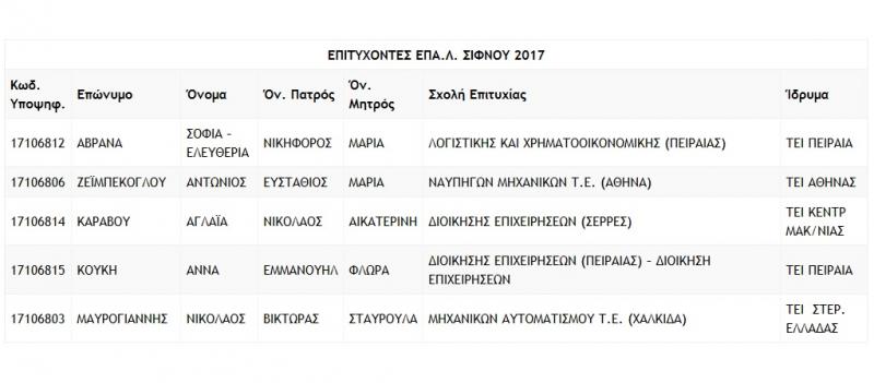 Επιτυχόντες ΕΠΑΛ Σίφνου