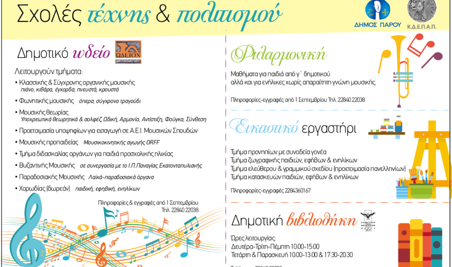 Ξεκίνησαν οι εγγραφές στις δημοτικές δομές μουσικής και τέχνης στο Δήμο Πάρου.