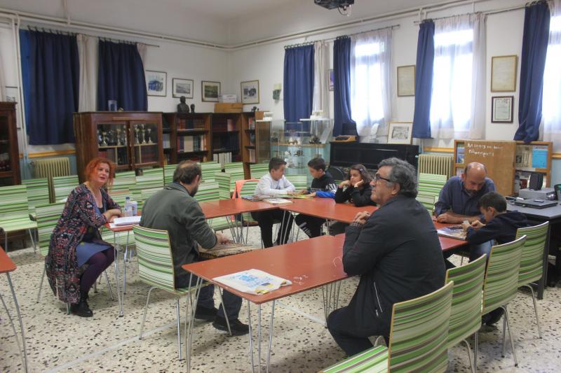 Η πρώτη φθινοπωρινή συνάντηση της Λέσχης Ανάγνωσης της Βιβλιοθήκης «Μάνος Ελευθερίου» πραγματοποιήθηκε χθες το μεσημέρι, παρουσία της Διευθύντριας του σχολείου Μαρίας Τσαλικίδου, του επί σειρά ετών Διευθυντή του 4ου Δημοτικού και συντονιστή της Λέσχης Ανάγνωσης Ερμούπολης Παναγιώτη Λίτσα, αλλά και εκπαιδευτικών της μονάδας.