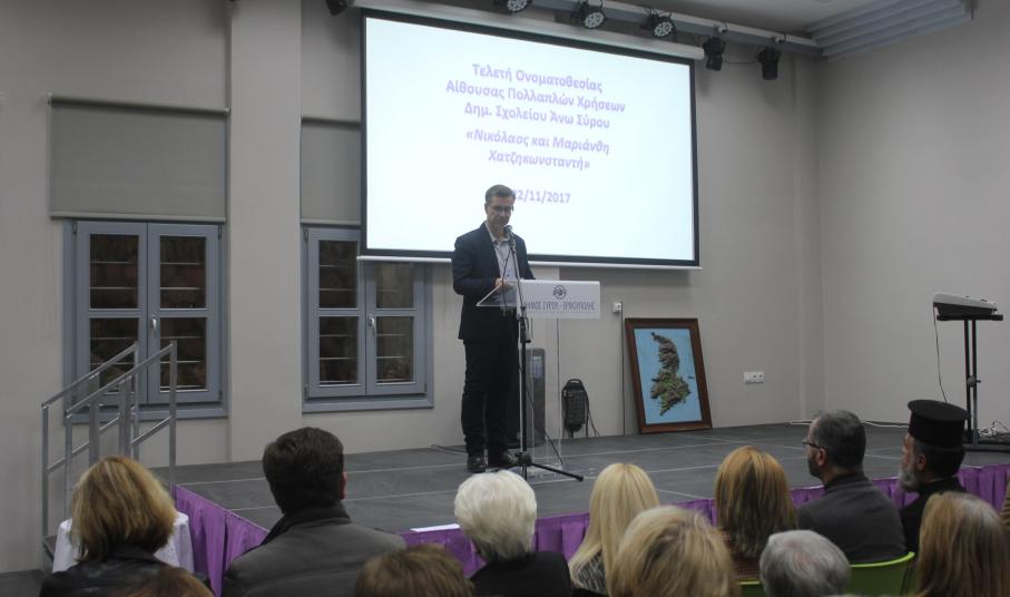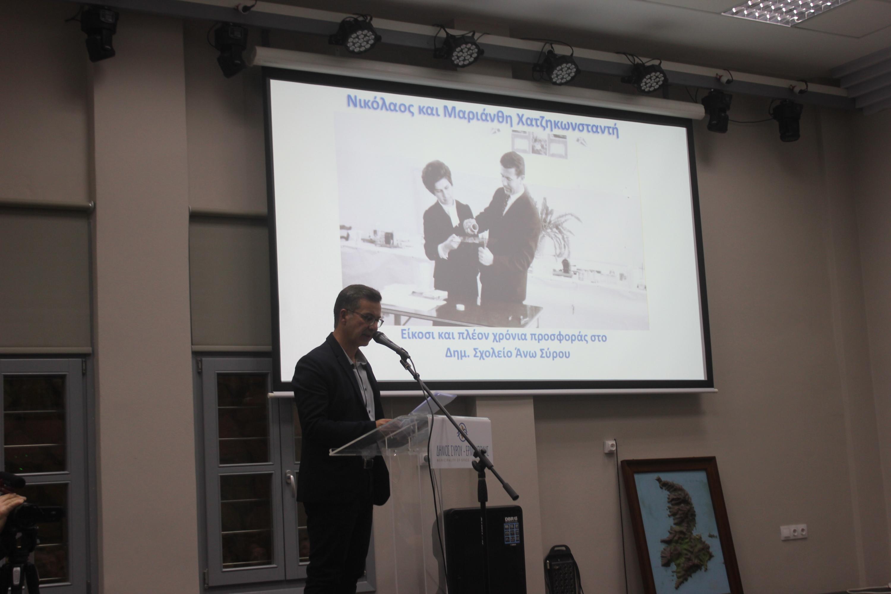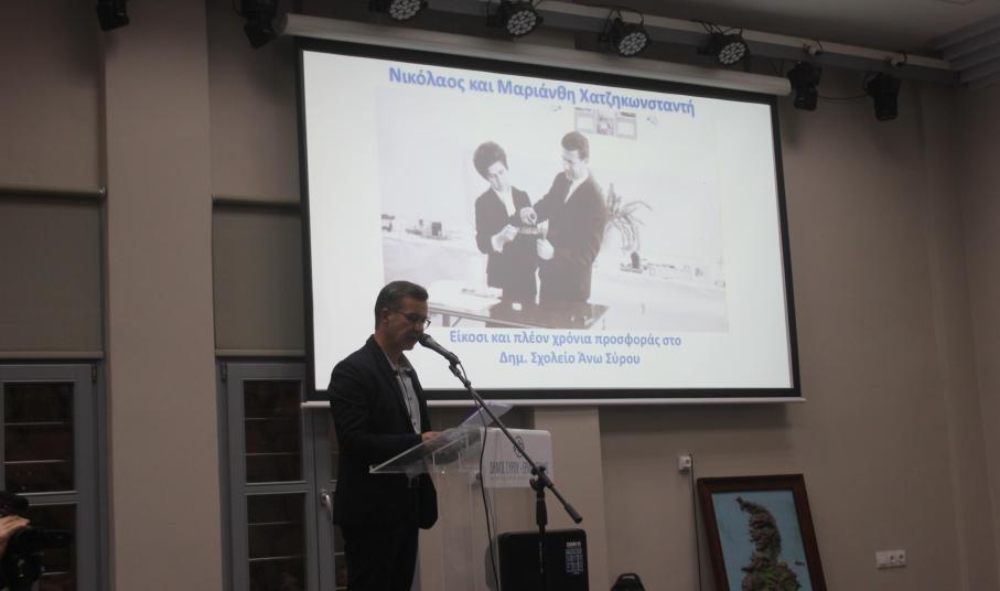«Στη συνείδηση της κοινωνίας της Άνω Σύρου η παρουσία του Νίκου και της Μαριάνθης Χατζηκωνσταντή θεωρήθηκε ταυτόσημη με το σχολείο» επεσήμανε ο κ. Πέτρος Προβελέγγιος.