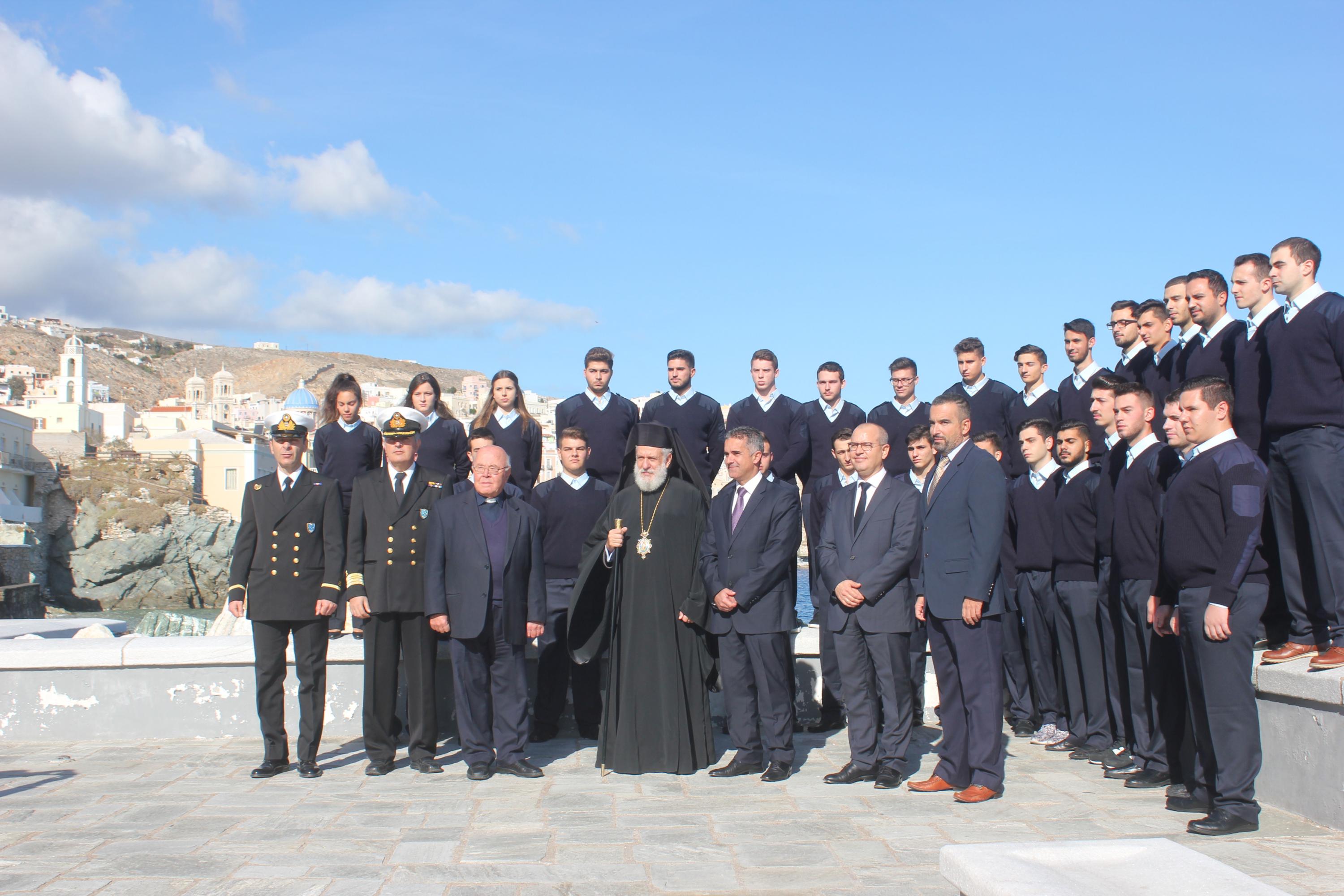 Τον καθιερωμένο Αγιασμό για το νέο διδακτικό έτος τέλεσε ο Σεβασμιώτατος Μητροπολίτης Σύρου κ. Δωρόθεος Β', ο οποίος ευχήθηκε στους σπουδαστές να αναδειχθούν άξιοι κυβερνήτες τόσο των πλοίων τους, όσο και της ζωής τους, η οποία θα διακρίνεται από την αλήθεια, την τιμιότητα, την εντιμότητα, τη συνεργατικότητα, τη φιλία και την αγάπη προς τον άλλον.