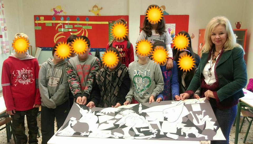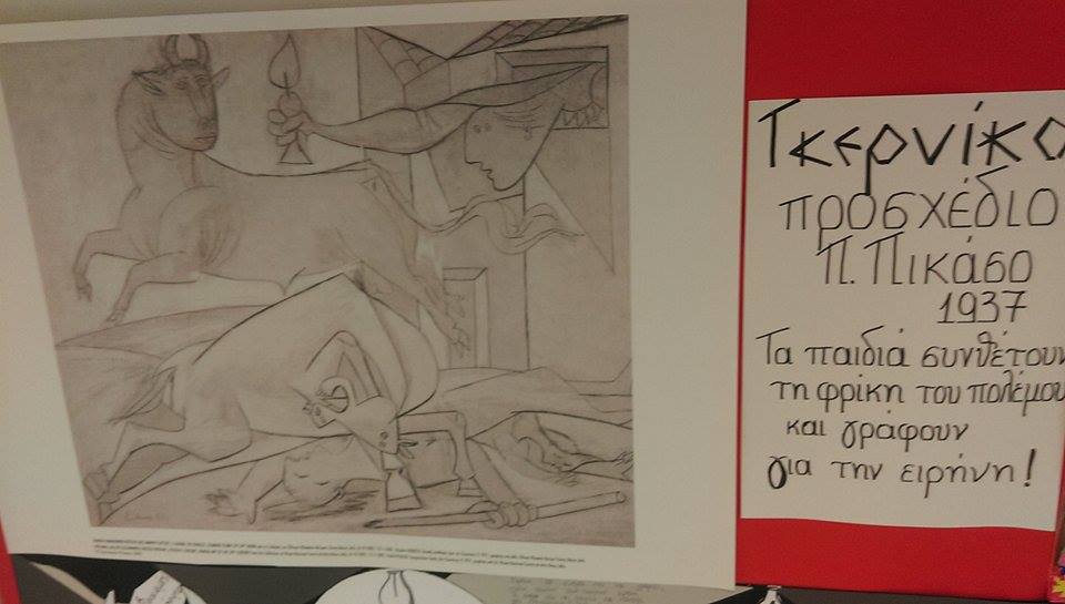 Τα παιδιά, μαζί με τη δασκάλα τους Γιούλη Τσακαλίδου ασχολήθηκαν με το διάσημο πίνακα του Ισπανού ζωγράφου, που δημιουργήθηκε το 1937, κατά παραγγελία της δημοκρατικής κυβέρνησης της Ισπανίας, με σκοπό να συμμετάσχει στη Διεθνή Έκθεση του Παρισιού.
