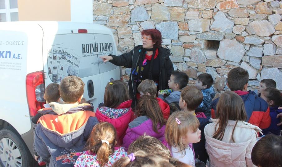 Επόμενος σταθμός του σχολείου ήταν οι εγκαταστάσεις της «Τυποκυκλαδικής», όπου στεγάζονται και τα γραφεία της «Κοινής Γνώμης», γνωστής στους μαθητές, καθώς στα φύλλα της φιλοξενούνται κατά καιρούς οι περισσότερες δράσεις του Νηπιαγωγείου που αφορούν στον πολιτισμό, στο περιβάλλον αλλά και στην επαφή των παιδιών με την ιστορία του τόπου τους.