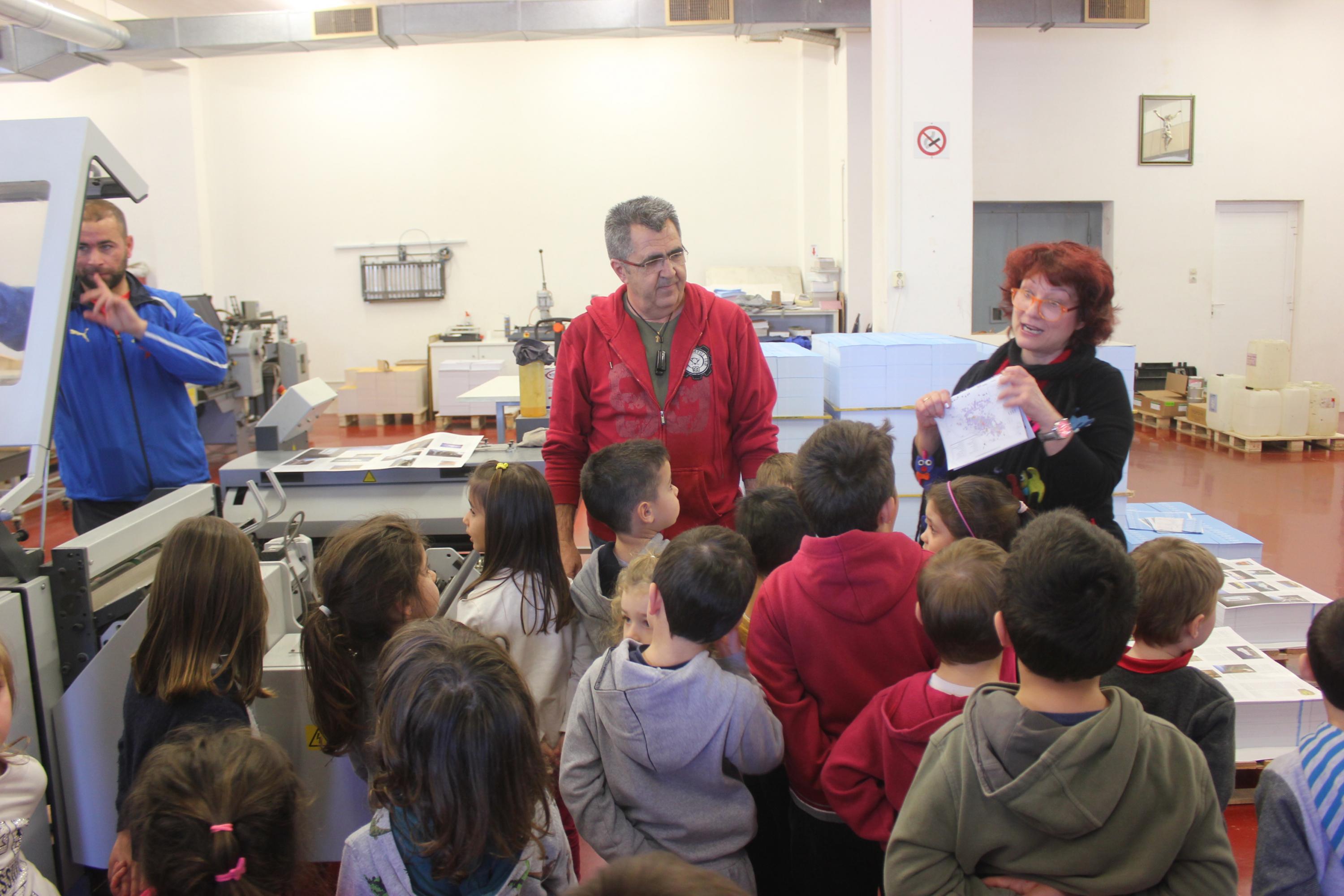 Παιδιά, νηπιαγωγοί και μητέρες ξεναγήθηκαν στους χώρους από τον ιδιοκτήτη της εκτυπωτικής μονάδας και εκδότη της «Κοινής Γνώμης» Γιώργο Βακόνδιο.