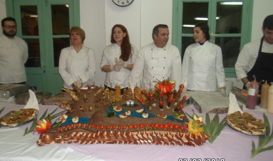 Την προετοιμασία των εδεσμάτων και το catering της εκδήλωσης ανέλαβαν τα τμήματα Μαγειρικής και Αρτοποιίας – Ζαχαροπλαστικής. Το εκπαιδευτικό προσωπικό και οι καταρτιζόμενοι είχαν την ευκαιρία μέσα σε ένα εορταστικό κλίμα να απολαύσουν τα εξαιρετικά εδέσματα που προετοίμασαν αποκλειστικά για τη γιορτή οι εκπαιδευόμενοι Μάγειρες chef και οι Αρτοποιοί – Ζαχαροπλάστες για τους οποίους αυτή η διαδικασία ήταν μία δημιουργική πρόκληση. Η συνολική παρουσίαση των εδεσμάτων που προσφέρθηκαν έγινε από τον εκπαιδευτή σεφ Κώστα Μπουγιούρη.