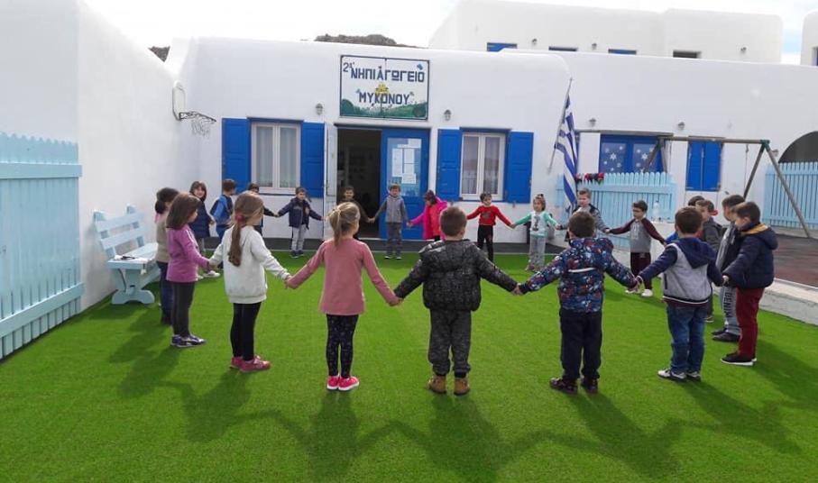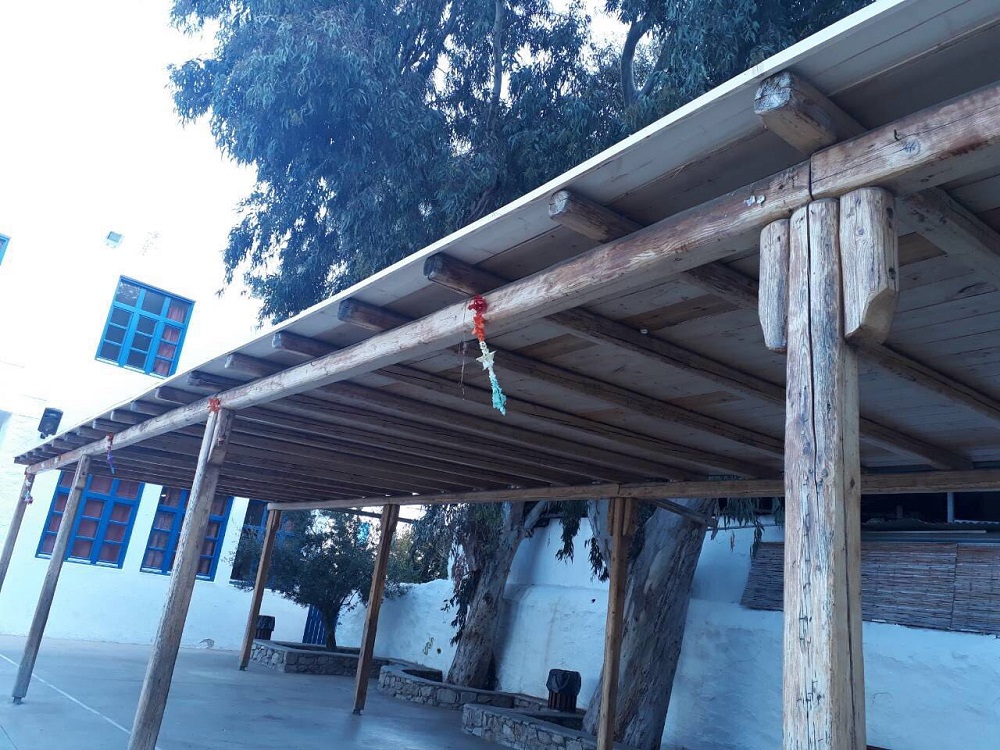 Πιο συγκεκριμένα, στην αυλή του 2ου Νηπιαγωγείου Μυκόνου αντικαταστάθηκε ο παλαιός χλοοτάπητας με νέο, ενώ αντίστοιχα στο 1ο Δημοτικό Σχολείο Μυκόνου επισκευάστηκε πλήρως η ξύλινη πέργκολα που βρίσκεται στον αύλειο χώρο.