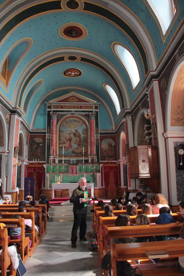 Πρώτος σταθμός παιδιών και νηπιαγωγών ήταν ο Ιερός Καθεδρικός Ναός του Αγίου Γεωργίου. Στη συνέχεια, επισκέφτηκαν τη Μονή Καπουκίνων, όπου τα παιδιά είχαν την ευκαιρία να πάρουν το πρωινό τους στον κήπο της Μονής και στη συνέχεια να ξεναγηθούν από τον πατέρα Paulino στο Μουσείο και την εκκλησία του Μοναστηριού. Ακολούθησε επίσκεψη και ξενάγηση στο Μουσείο του Μάρκου Βαμβακάρη και στο Μουσείο των Παραδοσιακών Επαγγελμάτων. Η όλη εξόρμηση ολοκληρώθηκε με παραδοσιακά ομαδικά παιχνίδια στην Καμάρα.