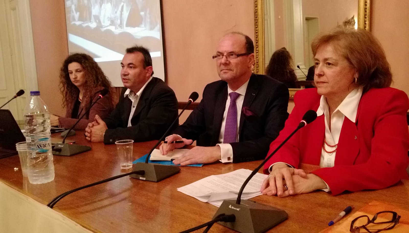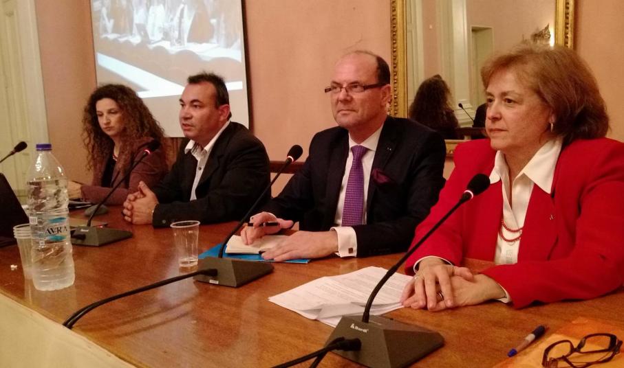 Η κ. Νικολακοπούλου ως συντονίστρια και συνδιοργανώτρια αφού υποδέχτηκε τον Δήμαρχο Σύρου κ. Γεώργιο Μαραγκό καθώς και τους ομιλητές, παρουσίασε το πρόγραμμα της εκδήλωσης.