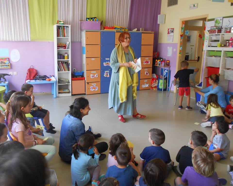 Η αλληλεπίδρασή τους ξεκίνησε με συζήτηση για τη σημασία αυτής της σημαντικής γιορτής. Στη συνέχεια, η κ. Ρούσσου εξήγησε στα παιδιά τον λόγο της επίσκεψής της και τους είπε το μυστικό της, το μυστικό όλων των μητέρων, διαβάζοντάς τους ένα βιβλίο, το «Αγάπη μου» του Astrid Desbordes. Στο τέλος της ανάγνωσης του βιβλίου η ίδια ζήτησε από τα παιδιά να της πουν ποιό ήταν τελικά το μυστικό και τα παιδιά με τη σειρά τους της απάντησαν ότι, ήταν η αγάπη και πως, οι μαμάδες αγαπούν πάντα τα παιδιά τους ό,τι και αν κάνουν.