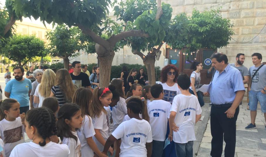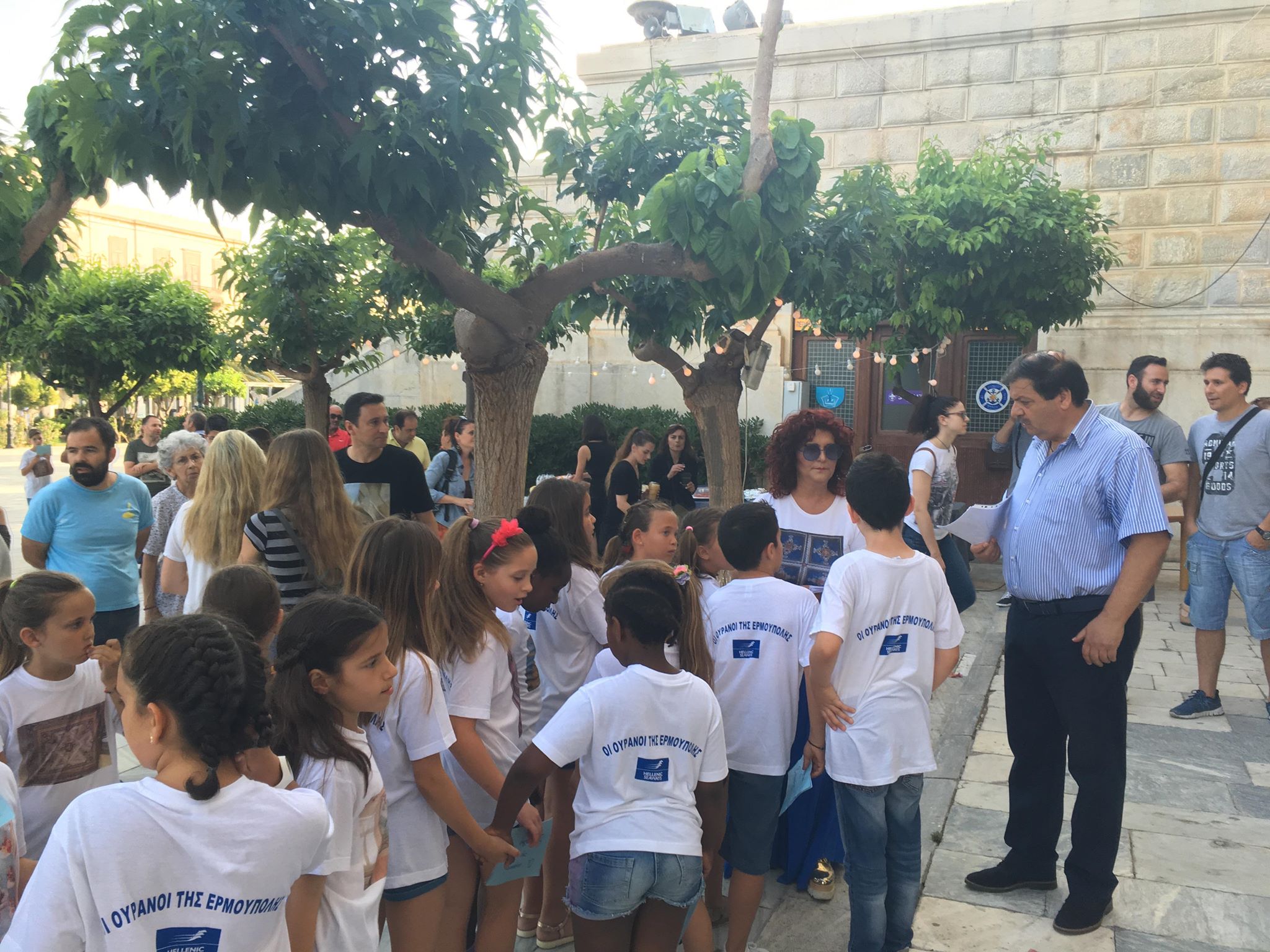 Τον πλούτο, την ιστορία και την τέχνη του παρελθόντος της πόλης τους γνώρισαν οι μαθητές του 1ου Δημοτικού Σχολείου Ερμούπολης μέσα από το εκπαιδευτικό πρόγραμμα «Οι Ουρανοί της Ερμούπολης»,.