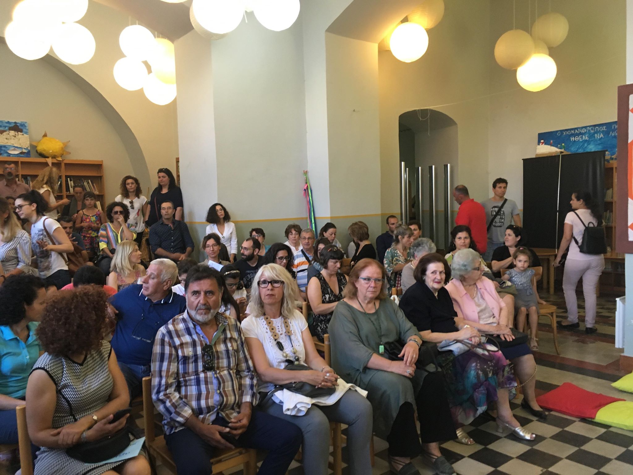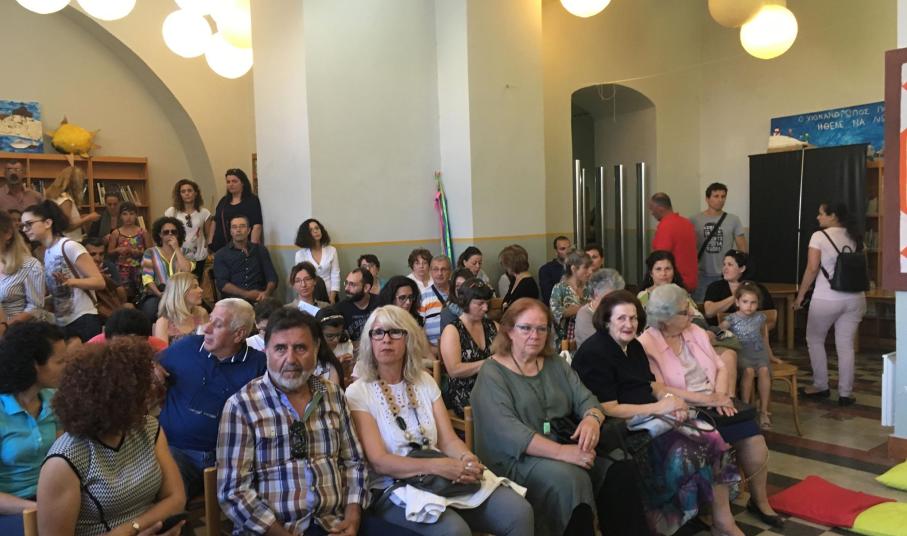 Η παρουσίαση του αναμνηστικού λευκώματος, στην οποία παρέστησαν, μεταξύ άλλων, στελέχη της εκπαίδευσης και η εντεταλμένη δημοτική σύμβουλος Βιβλιοθηκών, Μαρίζα Αγγελοπούλου άνοιξε και έκλεισε με το τραγούδι «Οι Ουρανοί της Ερμούπολης», πρωτότυπη σύνθεση του μουσικού Γιάννη Ρηγούτσου, σε στίχους των ίδιων των μαθητών.