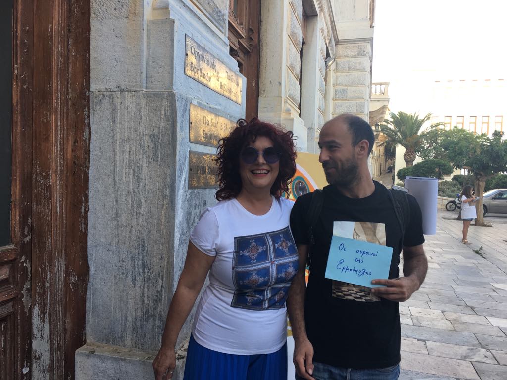 Οι ίδιοι δεν παρέλειψαν να ευχαριστήσουν τους οικοδεσπότες των κτιρίων για τη θερμή φιλοξενία τους, καθώς επίσης τον Σεβασμιώτατο Μητροπολίτη Σύρου κ. Δωρόθεο Β’, την Ειρήνη Δράκου, την Αργυρένια Παραμάνη, την Αγγελική Παπαλάκη, τον Παναγιώτη Κουλουμπή, τη Μαρίζα Αγγελοπούλου, τη Δημοτική Βιβλιοθήκη Σύρου – Ερμούπολης, τη δασκάλα καλλιτεχνικών του 1ου Δημοτικού κ. Κατερίνα, η οποία δημιούργησε με όλες τις τάξεις του σχολείου από μία οροφογραφία σε καμβά και τον Γιάννη Πρίντεζη για το τελάρωμα των έργων.