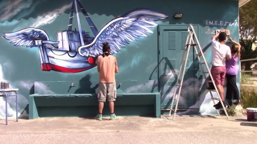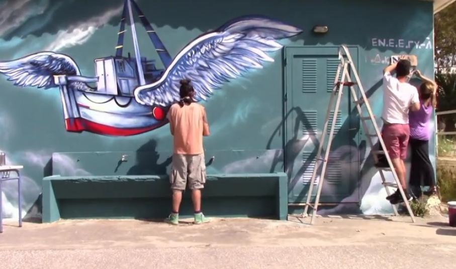 Μαθητές του Λυκείου του ΕΝ.Ε.Ε.ΓΥ.-Λ Σύρου, μέλη της ομάδας ψυχοκοινωνικής στήριξης που λειτούργησε καθ’ όλη τη διάρκεια του διδακτικού έτους από την ψυχολόγο και τον κοινωνικό λειτουργό, έκλεισαν το φετινό κύκλο της, δημιουργώντας ένα γκράφιτι στο σχολείο τους.