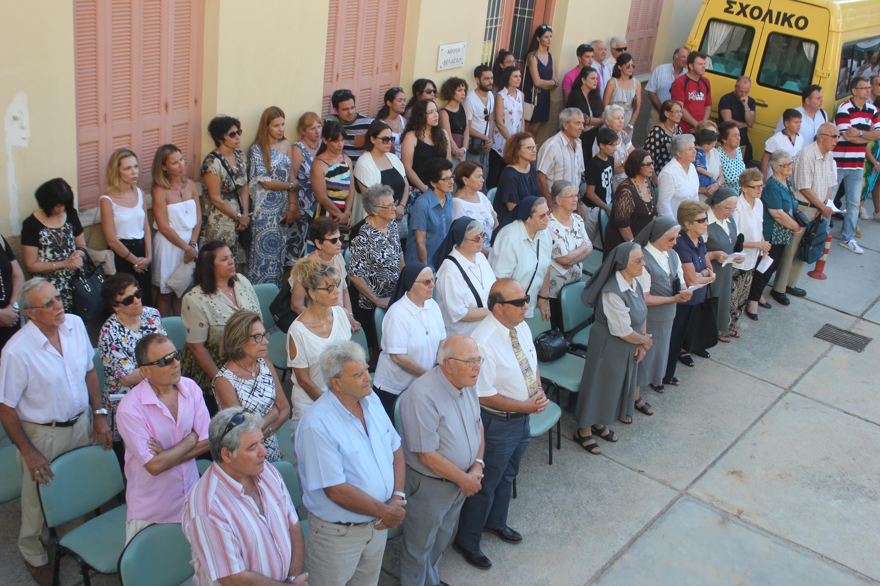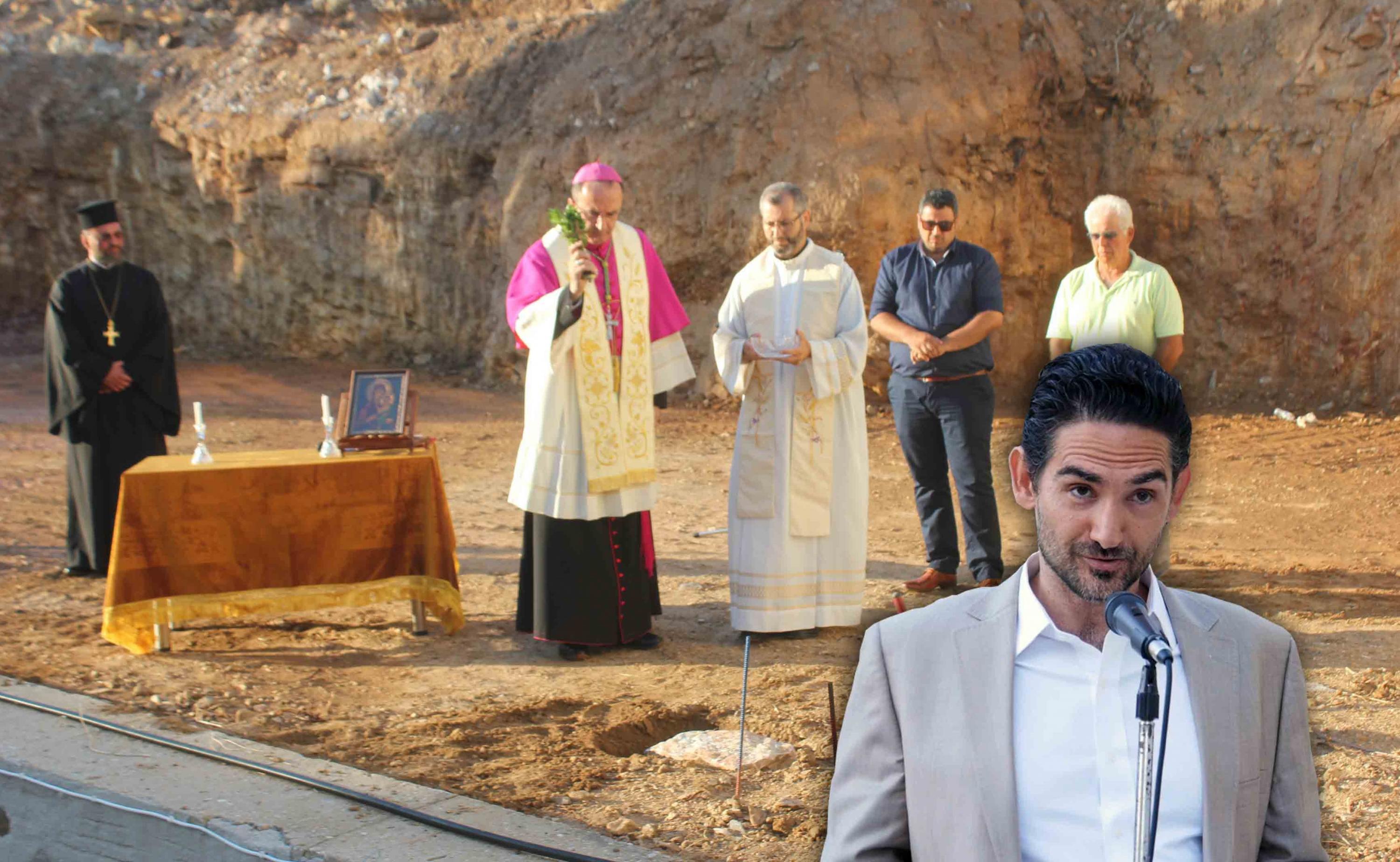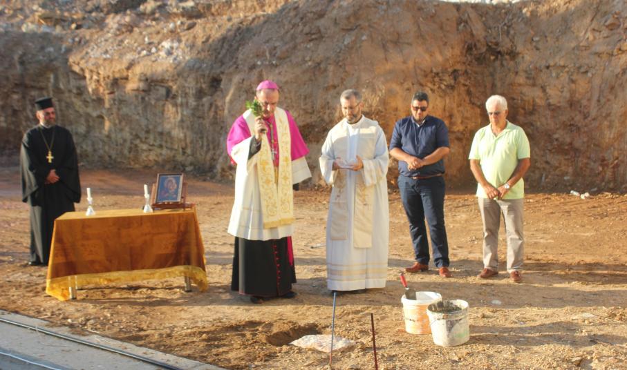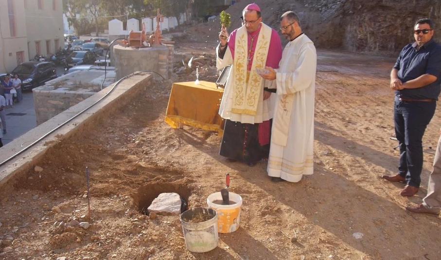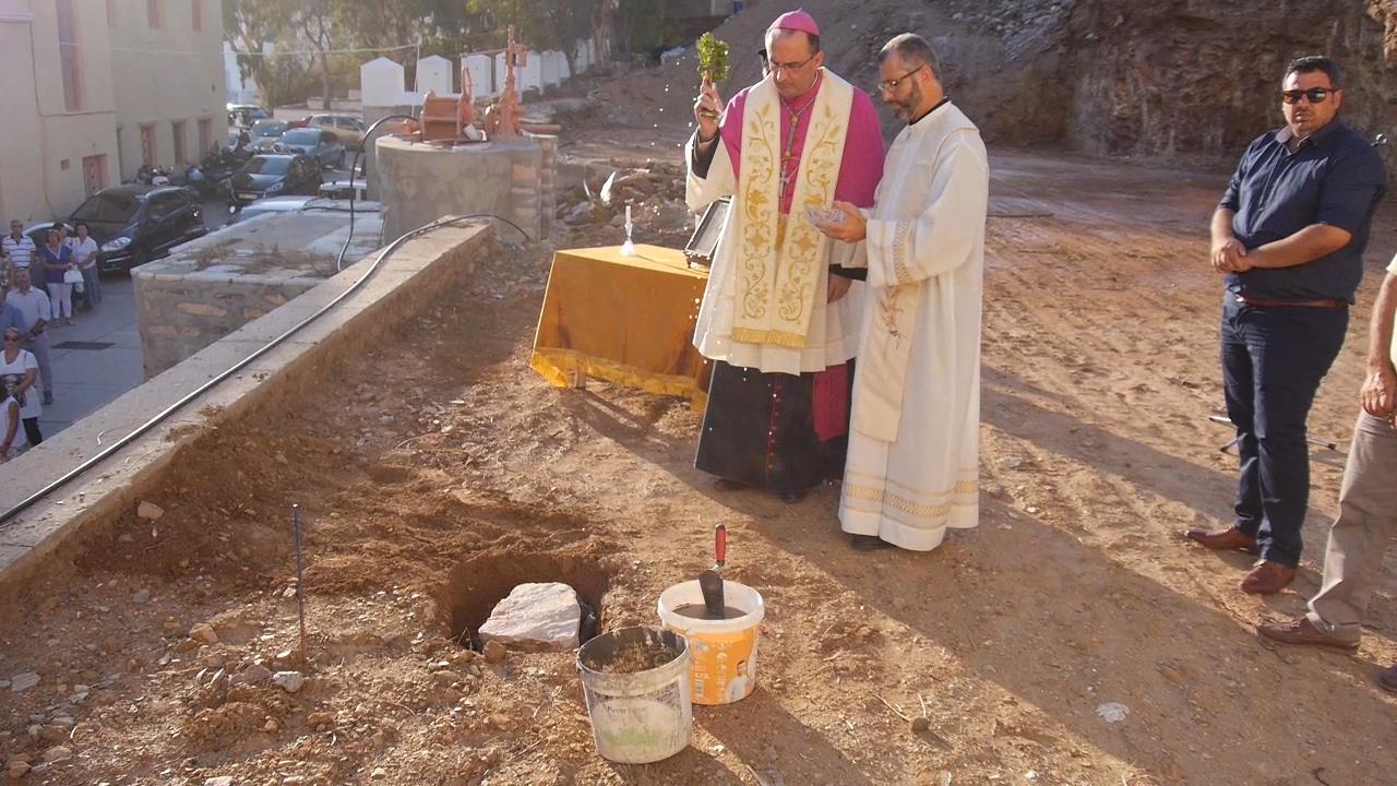 Αμέσως μετά, τον λόγο έλαβε ο Καθολικός Επίσκοπος, Σεβ. π. Πέτρος Στεφάνου, ο οποίος εξέφρασε τα θετικά συναισθήματα που “πλημμυρίζουν” την Καθολική Εκκλησία για την ανάπτυξη των Χριστιανικών Σχολών στο νησί αλλά και σε όλη την Ελλάδα. “Ο θεμέλιος λίθος σε αυτό το έργο δηλώνει την επιθυμία των Αδελφών να συνεχίσουν με τόλμη και όραμα την προσφορά τους στα παιδιά και στους νέους του νησιού μας” υπογράμμισε ο Σεβασμιώτατος, επισημαίνοντας πως, η προσπάθεια των Αδελφών “αυξάνεται μέσω των σχολείων τους, να πλησιάσουν και να μορφώσουν με Χριστιανικές αξίες, όλο και περισσότερα παιδιά και νέους”.