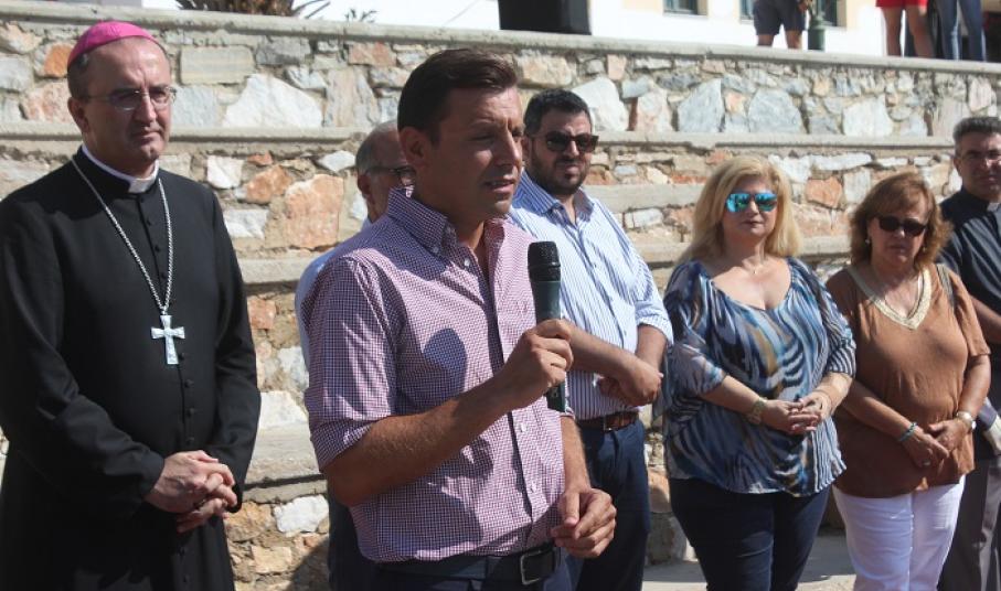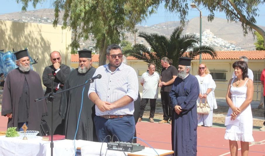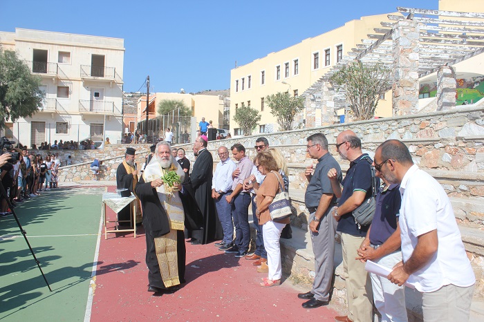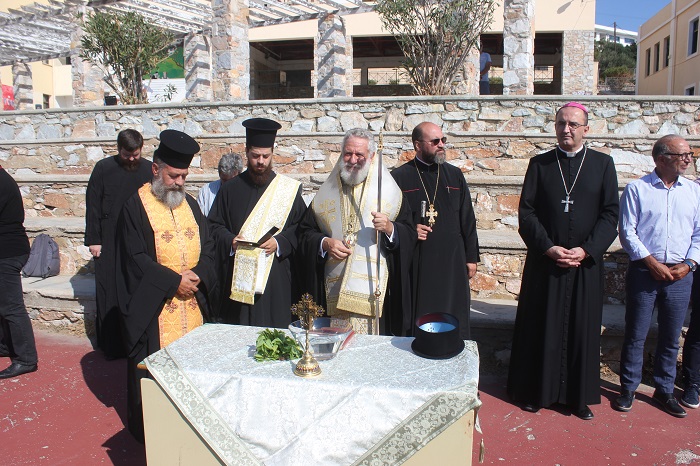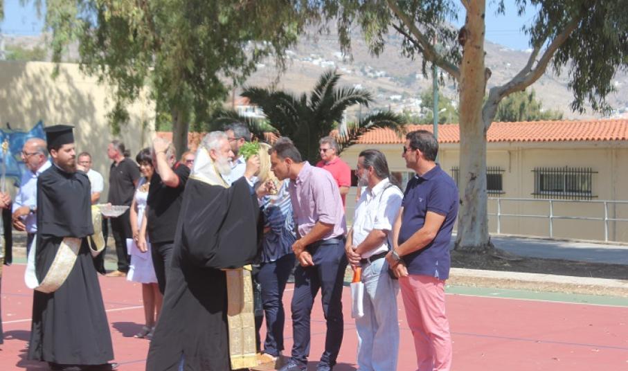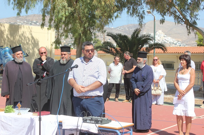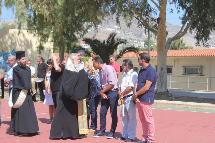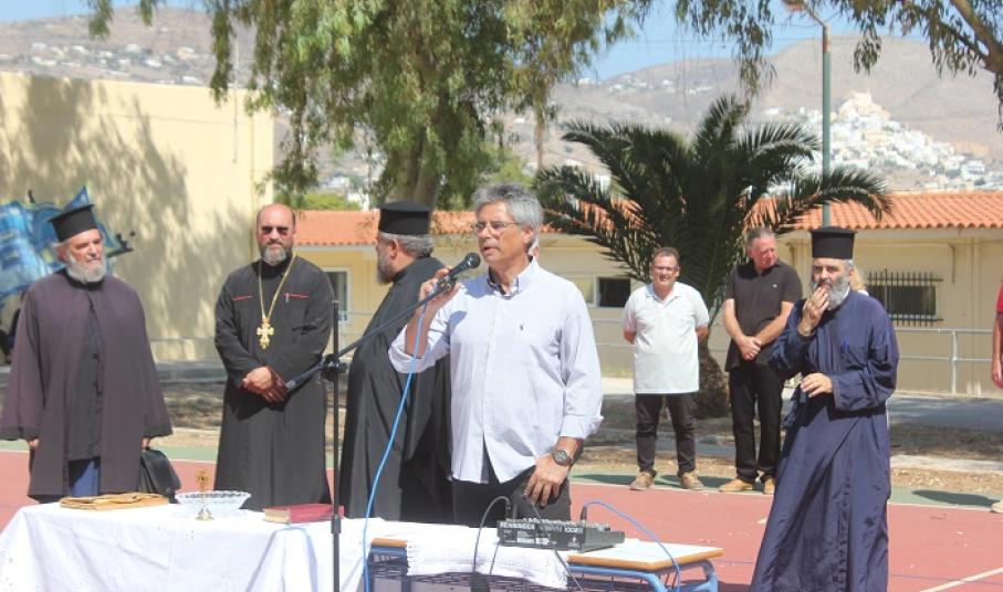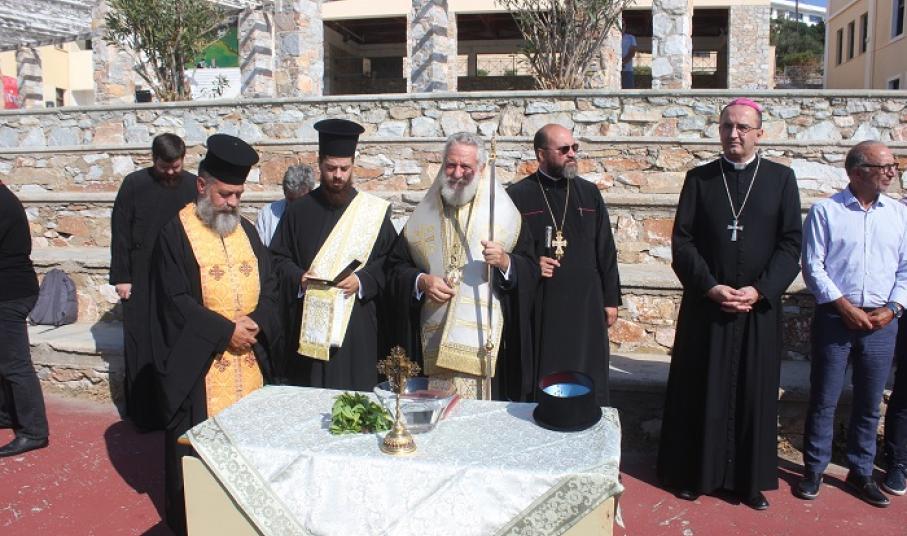 Τον αγιασμό τέλεσε ο Σεβασμιώτατος Μητροπολίτης Σύρου κ. Δωρόθεος Β’, πλαισιωμένος από κληρικούς της Ιεράς Μητρόπολης, ενώ τις ευχές του απηύθυνε στους μαθητές και ο Καθολικός Επίσκοπος Σύρου Σεβ. π. Πέτρος Στεφάνου.