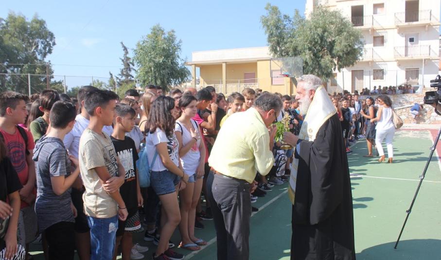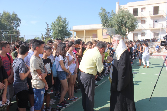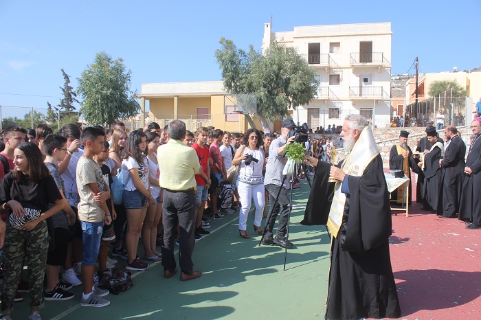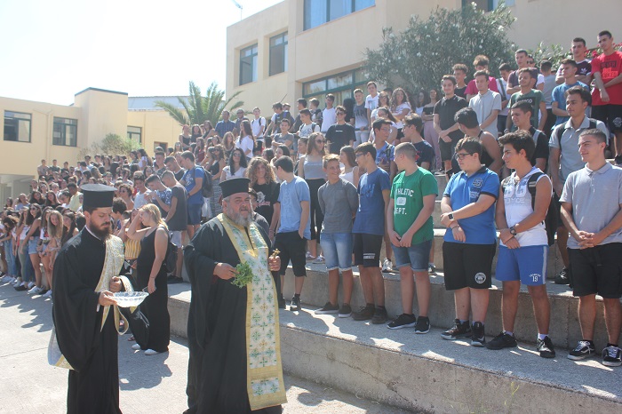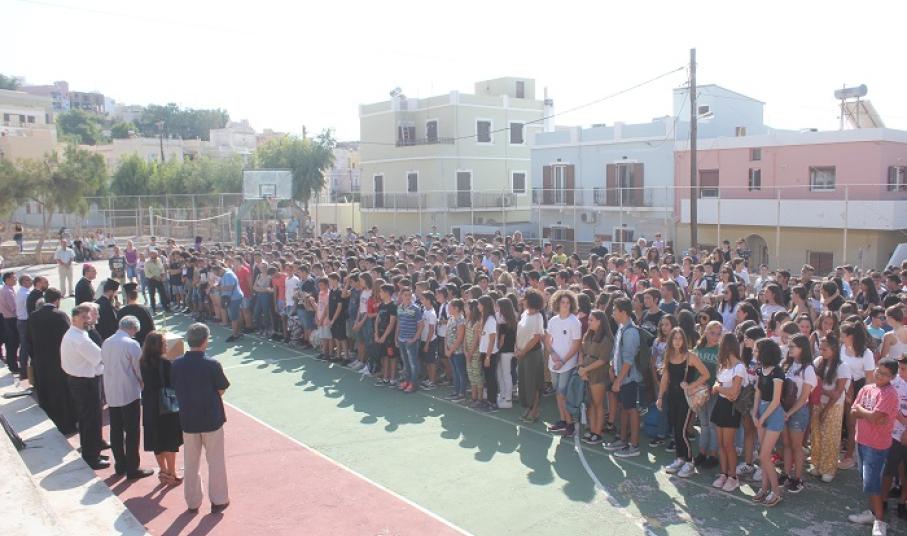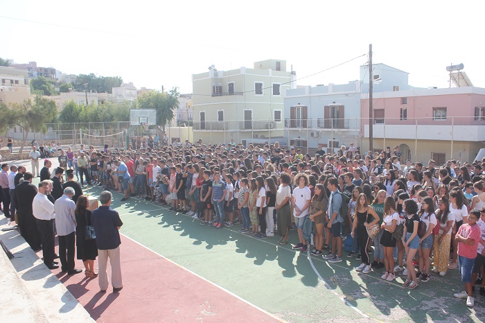 Παλαιούς και νέους μαθητές υποδέχτηκε σήμερα το πρωί η οικογένεια της Δευτεροβάθμιας Εκπαίδευσης στη Σύρο, κατά τον καθιερωμένο αγιασμό για την έναρξη της νέας σχολικής χρονιάς στα συγκροτήματα των Γυμνασίων και των Λυκείων στη Σύρο.