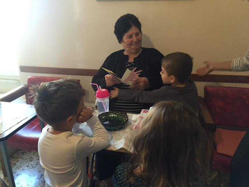 Ωστόσο, υπογραμμίστηκε ότι κάποιοι ηλικιωμένοι δε βρίσκονται κοντά στην οικογένειά τους και μένουν μακριά από το σπίτι τους. Έτσι, τα παιδιά εξέφρασαν την επιθυμία να κάνουν κάτι γι’ αυτό. Έφτιαξαν κάρτες με μία μεγάλη αγκαλιά και πολλή αγάπη γι’ αυτούς καθώς και κέικ μήλου για να τους προσφέρουν.