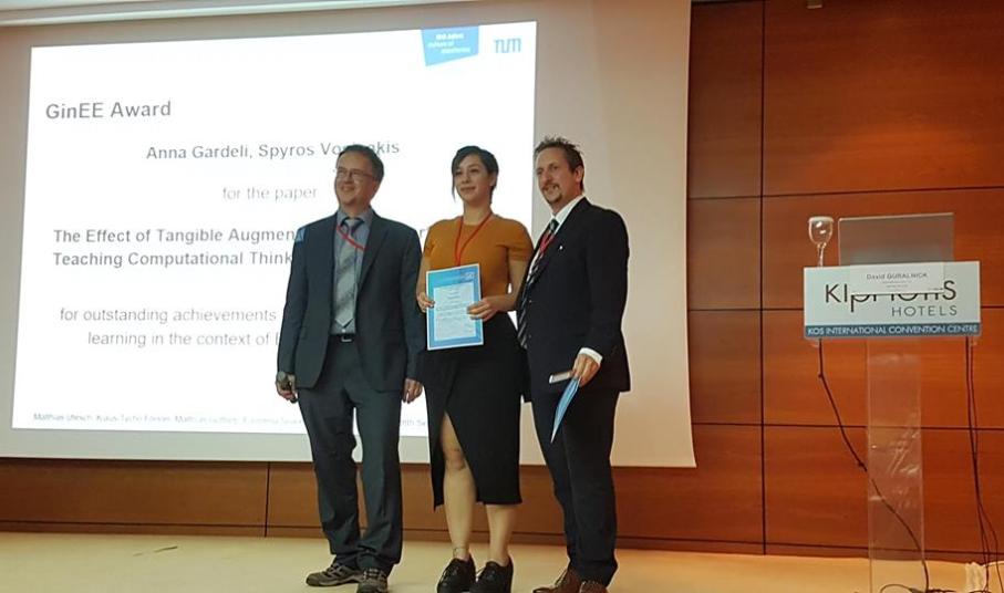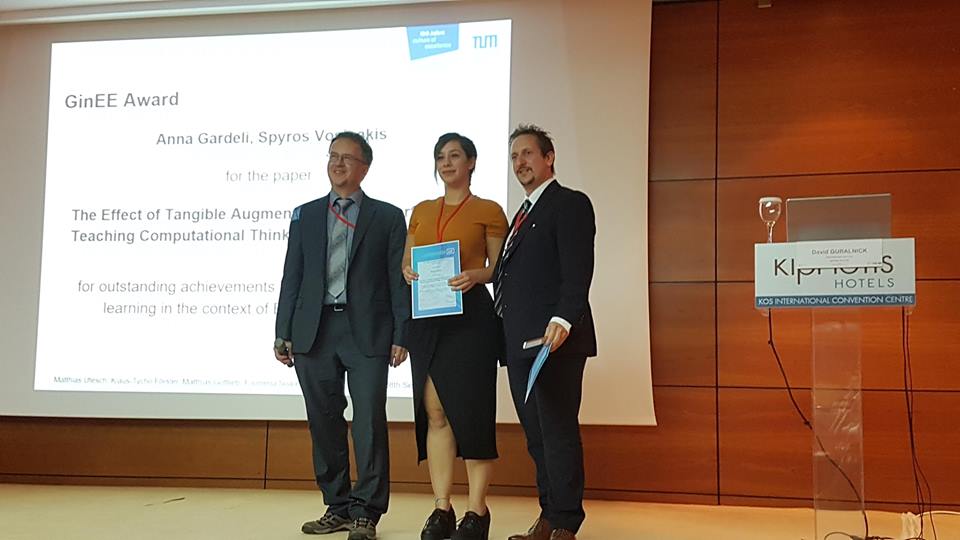 Η εργασία της πρώην φοιτήτριας και νυν υποψήφιας διδάκτορα του ΤΜΣΠΣ, Άννας Γαρδέλη με αντικείμενο τη διδακτική εισαγωγικών εννοιών προγραμματισμού σε μαθητές δημοτικού μέσω απτών αντικειμένων και φορητής επαυξημένης πραγματικότητας, παρουσιάστηκε και βραβεύτηκε στο Διεθνές Συνέδριο ICL 2018, που διεξήχθη στην Κω.
