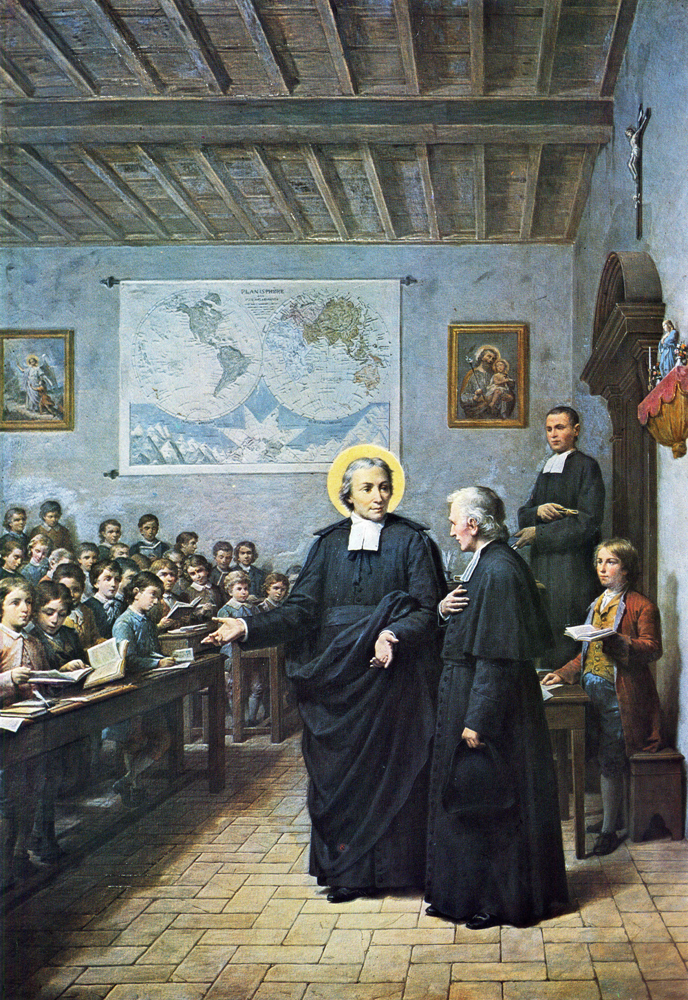 Ο ίδιος γεννήθηκε στης Reims της Γαλλίας το 1651 από οικογένεια ευγενών. Μετά το πέρας των θεολογικών σπουδών του στη Σορβόννη και σε ηλικία 27 ετών, χειροτονήθηκε ιερέας. Η σχεδόν ανύπαρκτη δημόσια εκπαίδευση στην εποχή του, τον οδήγησε στην απόφαση να δημιουργήσει σχολεία για τα άπορα παιδιά. Έτσι, το 1681 ίδρυσε το «Τάγμα των Αδελφών των Χριστιανικών Σχολείων (Frères). Οι δυσκολίες που συνάντησε στο δρόμο του δεν τον απογοήτευσαν. Η μεθοδική και συστηματική δουλειά, καθώς και η αφοσίωσή του στα παιδιά συνέβαλαν στην επίτευξη των στόχων του. Εκτός από τον ζήλο για την αποστολή του, ο Ιωάννης-Βαπτιστής Δελασάλ αναδείχθηκε ένας μεγάλος παιδαγωγός για την εποχή του. Από τις μεγαλύτερες καινοτομίες του ήταν η αντικατάσταση των λατινικών με τη γαλλική γλώσσα, η ταυτόχρονη διδασκαλία στους μαθητές, ο διαχωρισμός των τάξεων σύμφωνα με τις γνώσεις και την ηλικία των μαθητών και η εκπόνηση κανονισμού λειτουργίας των σχολείων. Ο ενθουσιασμός και οι μεγάλες επιτυχίες των Frères στα σχολεία τους, συνεχίστηκαν και μετά το θάνατό του, το 1719.