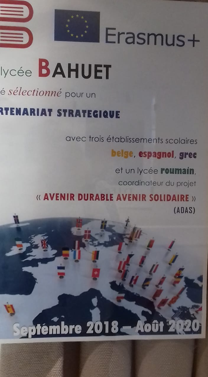 Η πρώτη αυτή κινητικότητα στο Λύκειο Bahuet στην πόλη Brive la Gaillarde, έλαβε χώρα μεταξύ 11 και 17 Νοεμβρίου 2018, χρηματοδοτήθηκε από το ΄Ιδρυμα Κρατικών Υποτροφιών και είχε ως στόχο την ανάπτυξη ενός από τους πυλώνες της βιώσιμης ανάπτυξης που είναι η κοινωνία και η κοινωνική ένταξη των ευπαθών ομάδων. Μέσα από την παρακολούθηση εργαστηρίων και διαλέξεων, οι μαθητές και οι καθηγητές συνοδοί τους ήρθαν σε επαφή με εκπροσώπους φορέων όπως η UNICEF, τα Restos du Coeur (Γεύματα Αγάπης), η Banque Alimentaire (Διατροφική Τράπεζα) και γνώρισαν τις δομές και την κοινωνική ευαισθησία και αποτελεσματικότητα με την οποία η εταίρος μας στην Ευρωπαϊκή Ένωση Γαλλία αντιμετωπίζει τα προβλήματα των ευπαθών ομάδων. Επίσης, μαθητές και συνοδοί καθηγητές συνεργάστηκαν με ομολόγους τους των συνεργαζόμενων σχολείων στις σχολικές αίθουσες του γαλλικού σχολείου, συμμετείχαν στην διδακτική διαδικασία στα μαθήματα Γαλλικής Λογοτεχνίας και Μάνατζμεντ σε τμήματα της προτελευταίας τάξης του Λυκείου Bahuet.
