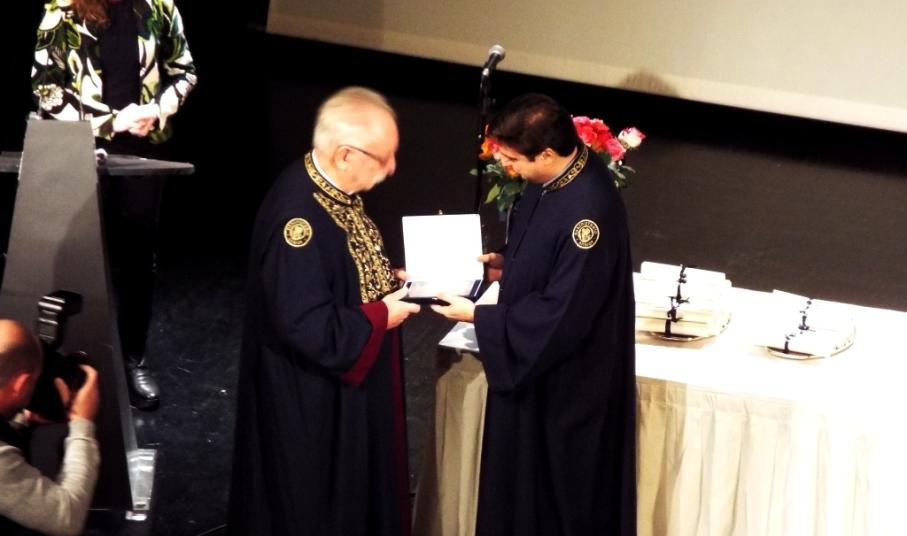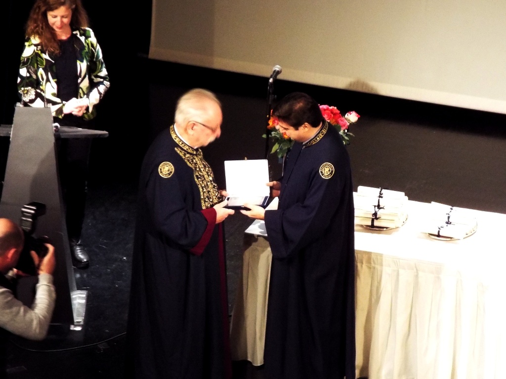 Παράλληλα, η τελετή της Παρασκευής, είχε έναν ακόμη λόγο συγκίνησης, αυτή τη φορά περισσότερο για το ακαδημαϊκό προσωπικό του Πανεπιστημίου, καθώς βραβεύτηκε και ανακηρύχθηκε σε Ομότιμο Καθηγητή του Παν. Αιγαίου, ο ιδρυτής του ΤΜΣΠΣ και πρόεδρός του επί σειρά ετών, καθηγητής Ιωάννης Δαρζέντας.