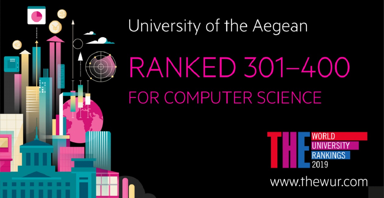 Το Πανεπιστήμιο Αιγαίου ανακοινώνει, με ιδιαίτερη χαρά, ότι στη νέα διεθνή θεματική κατάταξη του Times Higher Education World University Rankings 2019, κατέλαβε και πάλι κορυφαία θέση. Συγκεκριμένα, στον κατάλογο που έχει δημοσιοποιηθεί, το Πανεπιστήμιο Αιγαίου βρίσκεται μεταξύ των θέσεων 301-400 της παγκόσμιας γενικής κατάταξης στον τομέα της Πληροφορικής (ICT).